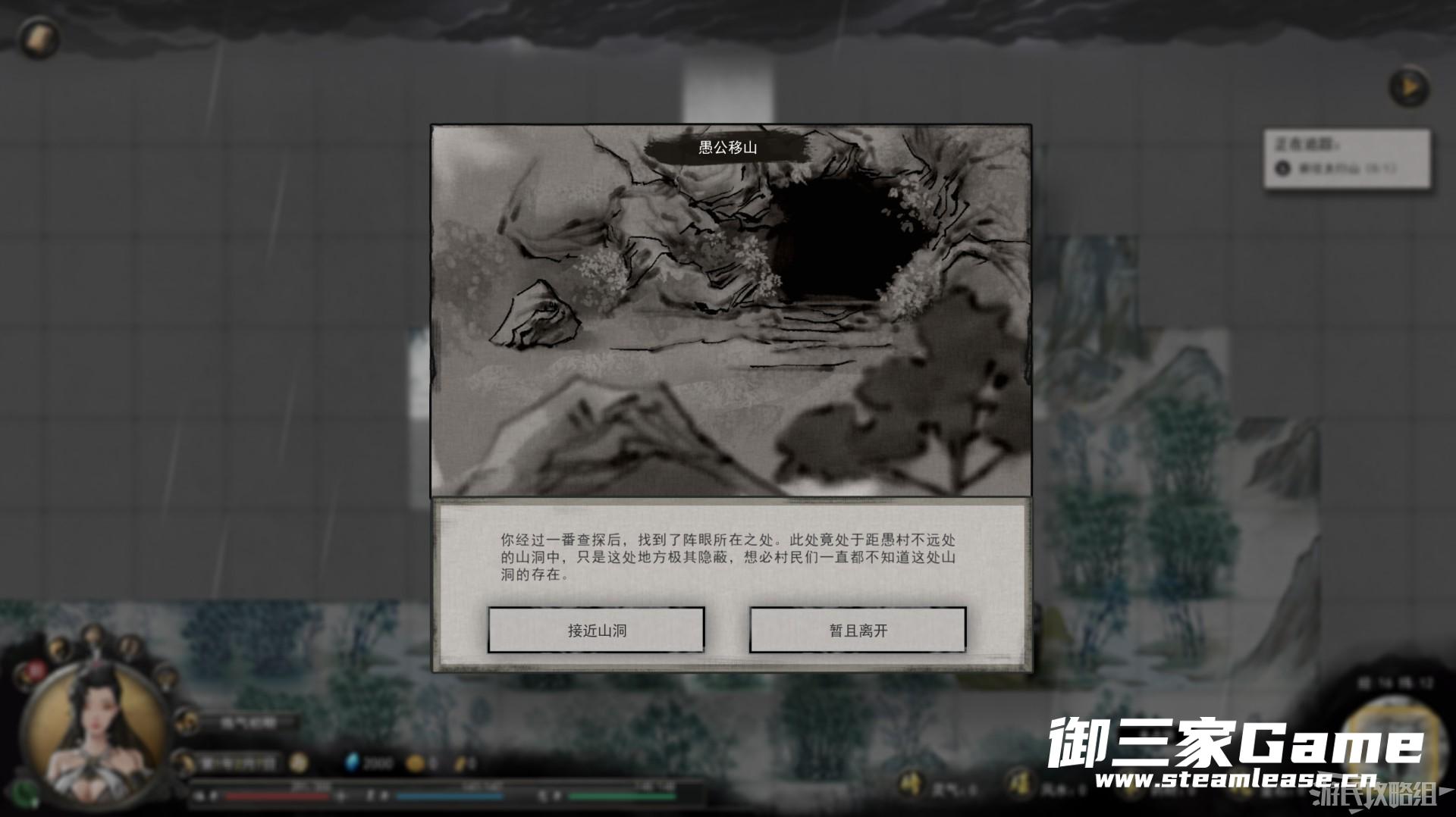 与村民一番交谈后得知大山中应该是有一个山神正在阻碍村民翻越大山,在大山附近可以找到山神居住的山洞。