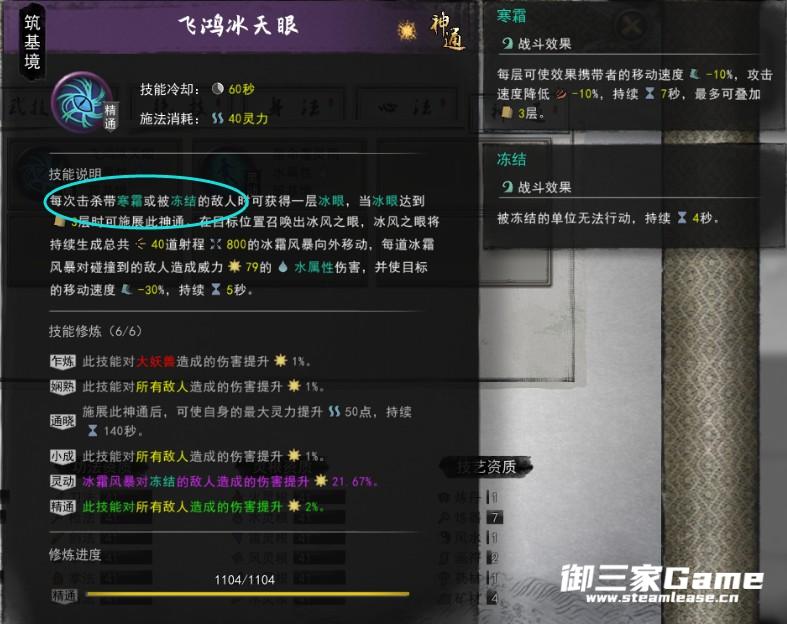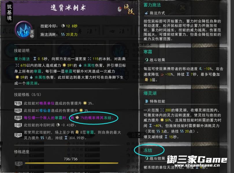 第二套使用左键或右键都可以触发神通,击杀左键带有的寒霜buff的敌人可以获得一层冰眼,击杀右键触发冻结的敌人时也可以获得冰眼,冰眼3层时可使用神通