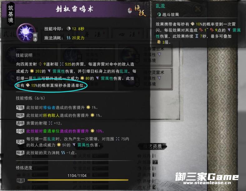 第一套右键(雷法的右键都有几率秒杀小怪)释放的技能有15%的几率秒杀普通敌人(精英怪和boss不能被秒杀),秒杀一个敌人时,可叠一道雷印,雷印达到3个时,可释放神通(很多道友秒杀不掉,为什么,因为伤害太高了,直接杀死了,所以没触发秒杀=-=
