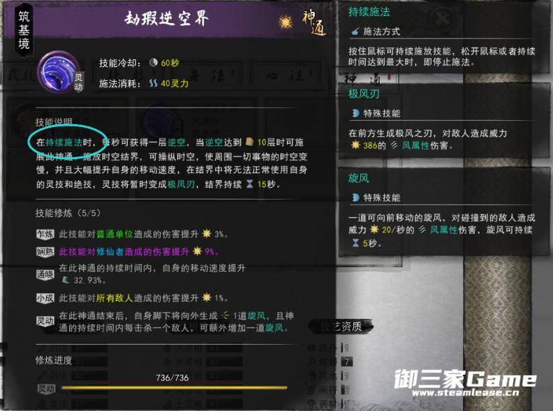 第二套右键长按施法每秒获得一层逆空,(左键有几率触发灵风,右键消耗灵风可以多1秒持续时间,一层1秒)10层逆空时可使用神通