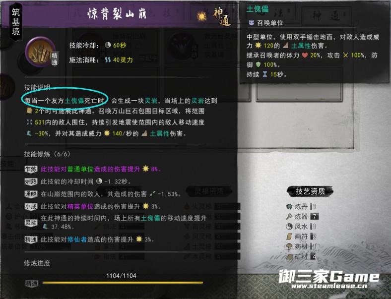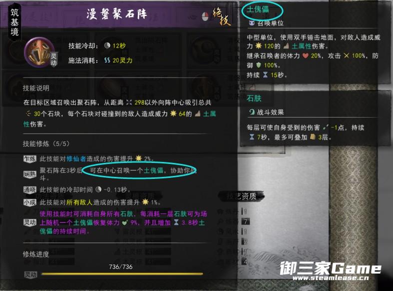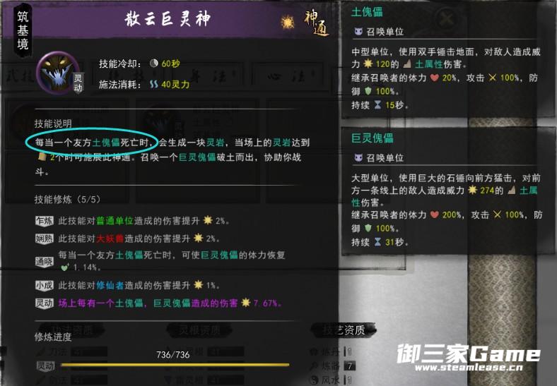 右键词条中有召唤土傀儡,当土傀儡死亡,可以用神通