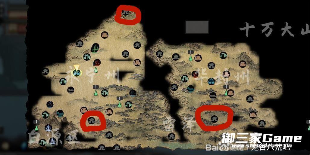 圆圈标记的就是通灵秘境的地方,不得不吐槽这个“苍星明南方”也太南方了,隔了十万八千米找了半年。