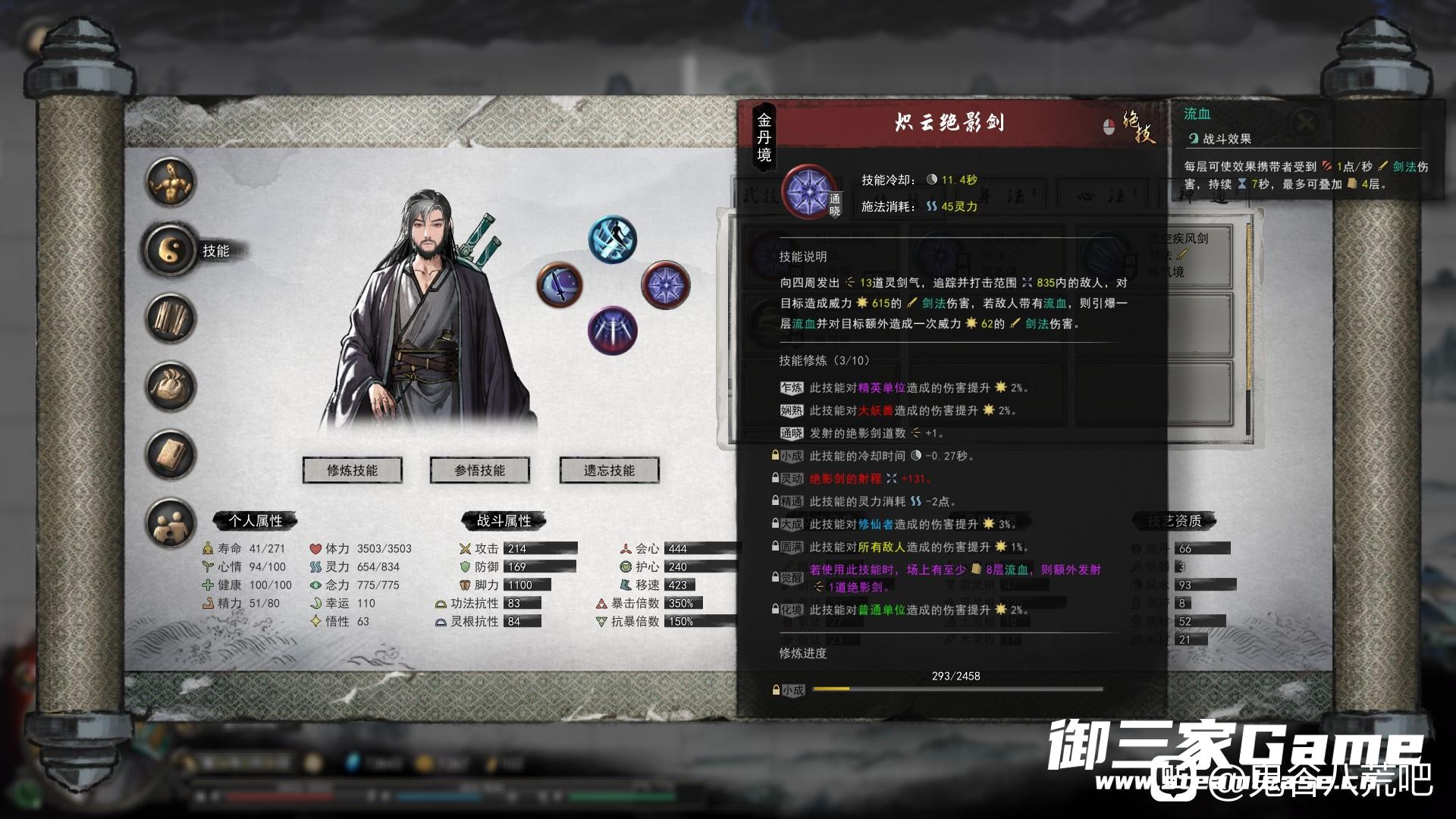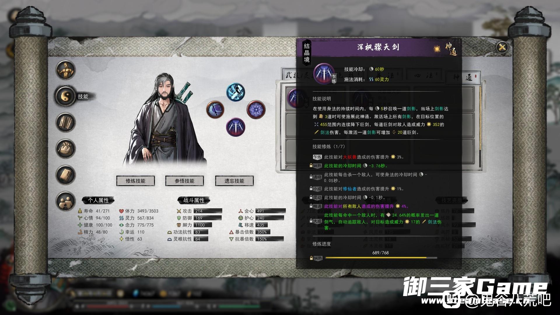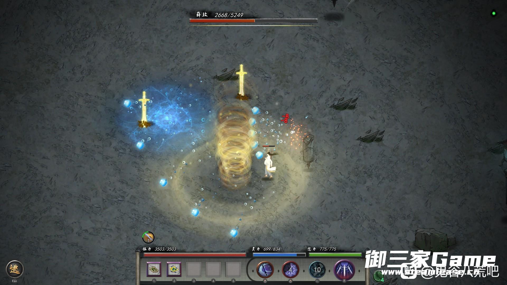 15s的身法可以留下四个剑影,开神通会有80把大剑从天而降,这时候你可以开到全屏都是你的大招,无论刷图还是打boss单挑,伤害都爆炸,而且龙卷风身法可以牵引敌人到大招中心,伤害最大化