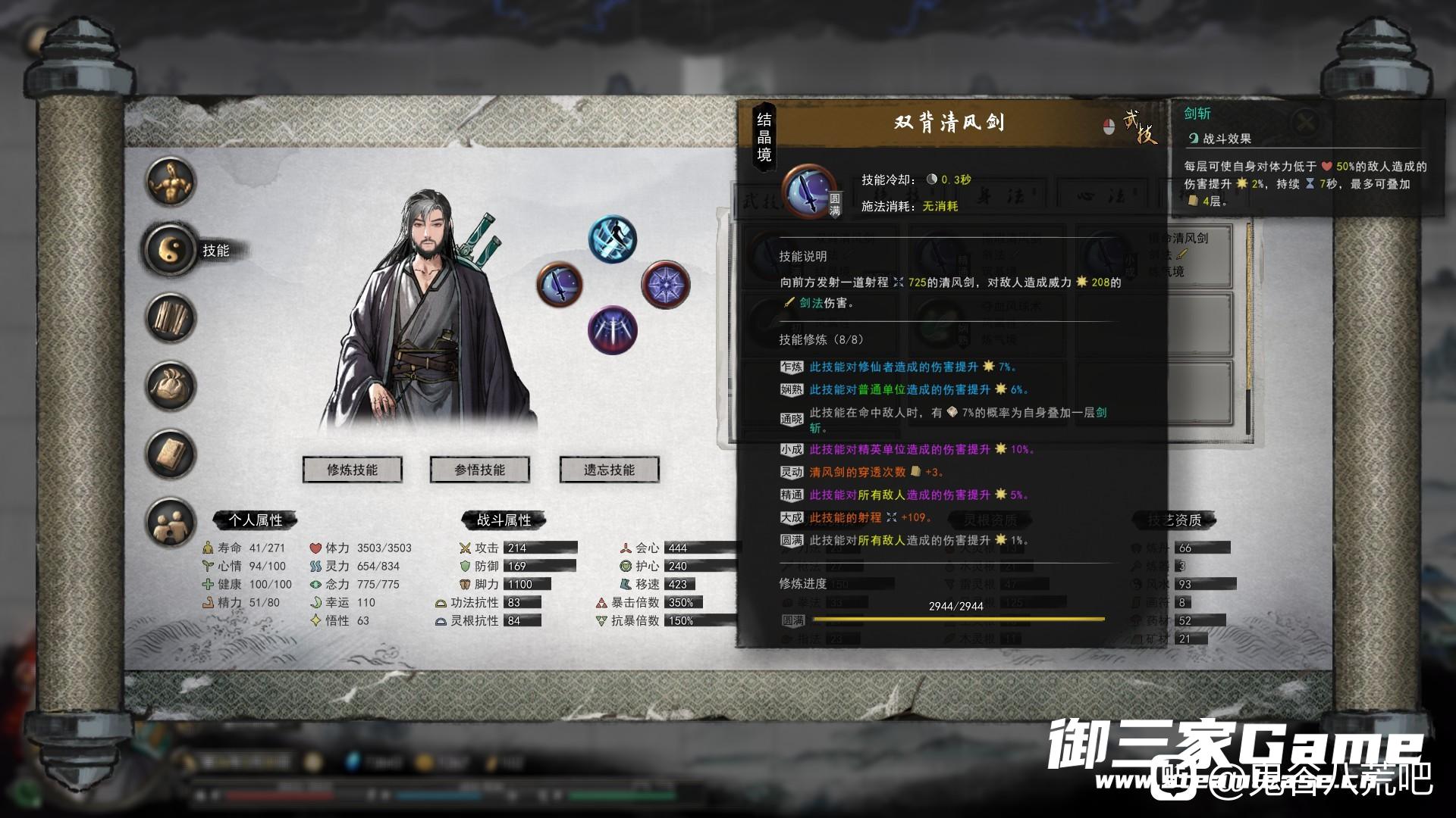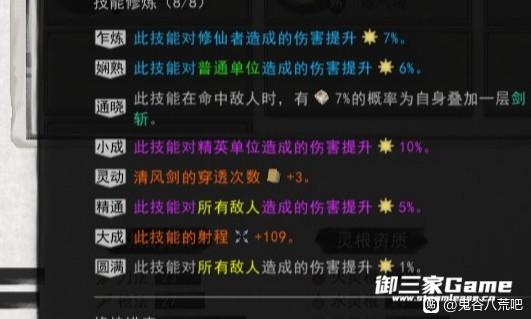 一定要选带穿透的剑技,剑修普攻快距离远,但一下就打一个怪很烦,直到后来我换了个剑技,发现词条里有一项是剑法穿透+3,瞬间好起来了。