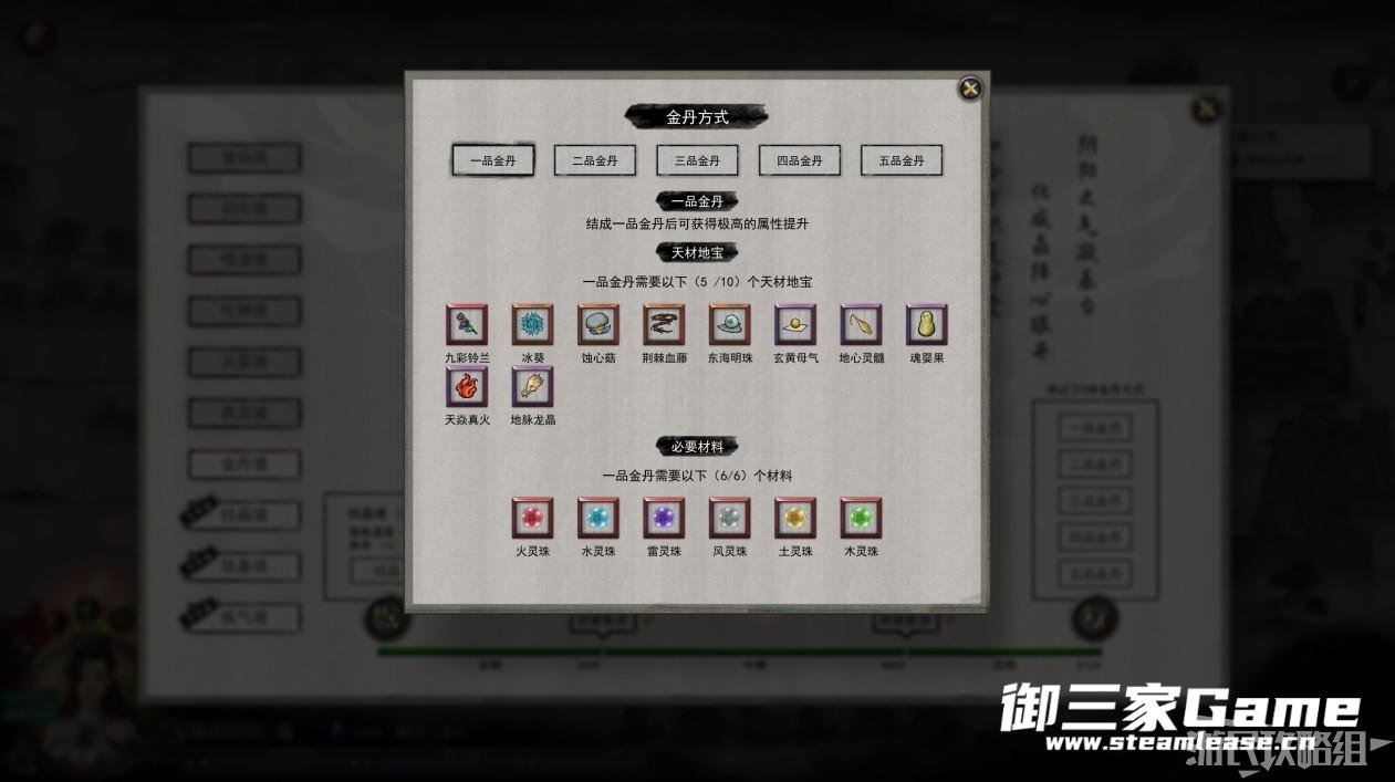 金丹境破境有五种方式,其中一品金丹所需材料最多,突破后的提升也最大。一品金丹需要五种天才地宝和六种属性的灵珠。五种天才地宝中红色品质的需要消灭雷泽中的大妖兽九霄雷神获得,其他的需要通过残破锁灵阵获得。灵珠获得的方式与灵气相同,刷碎片合成或直接消灭大妖兽即可。
