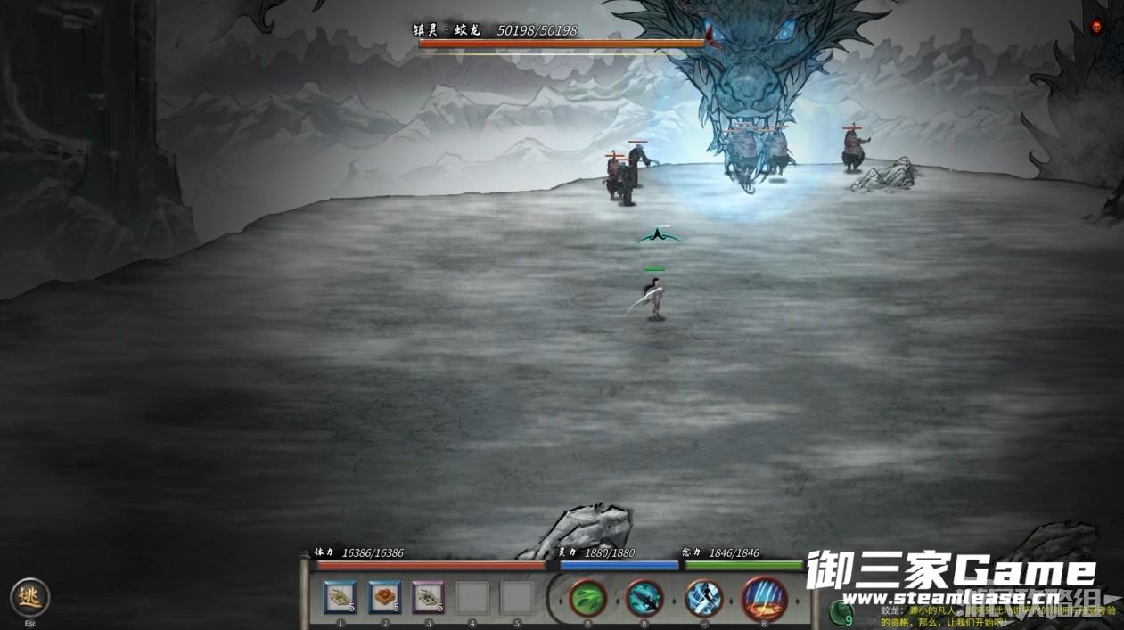 再次返回盘龙山将蕴仙芝交给神官后与蛟龙战斗,将蛟龙击败获得蛟龙神魂。