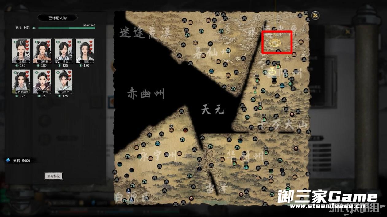 在五岳真形图中注入灵石即可查看到隐藏的大妖所在位置。
