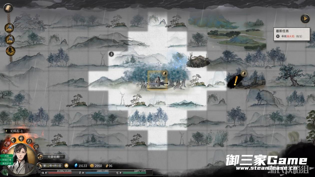 与五月真形图相似,将灵石注入神官交给我们的幻风石中可以查看到浴火石所在位置。