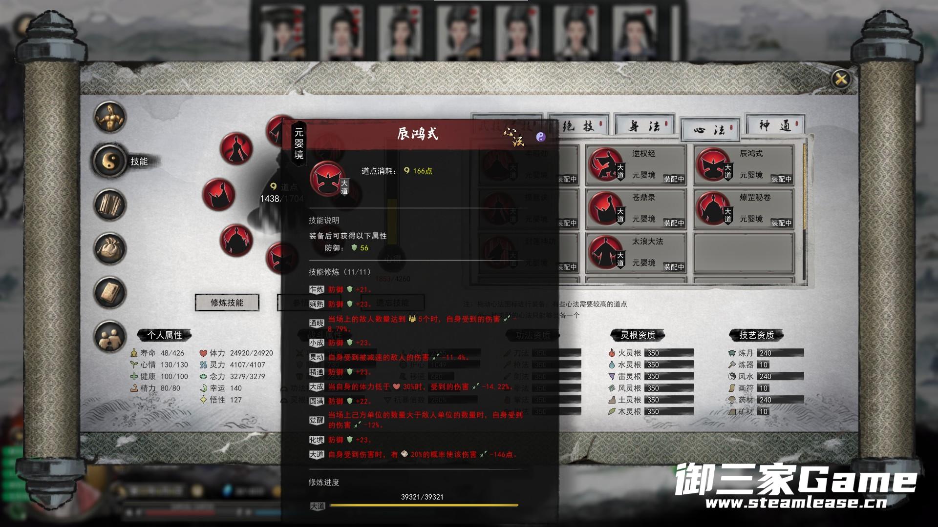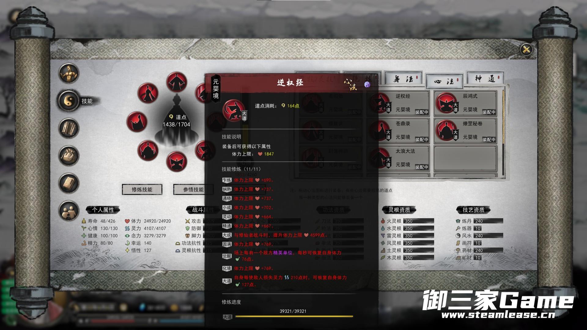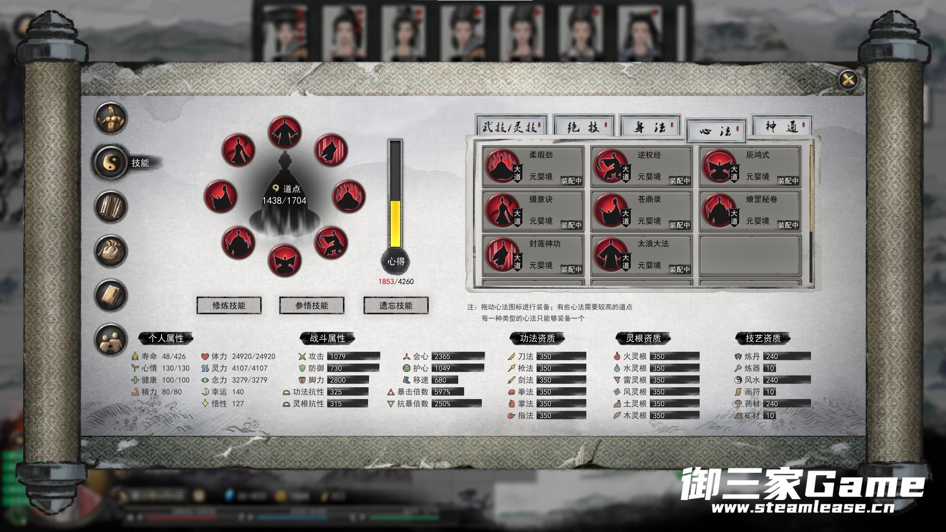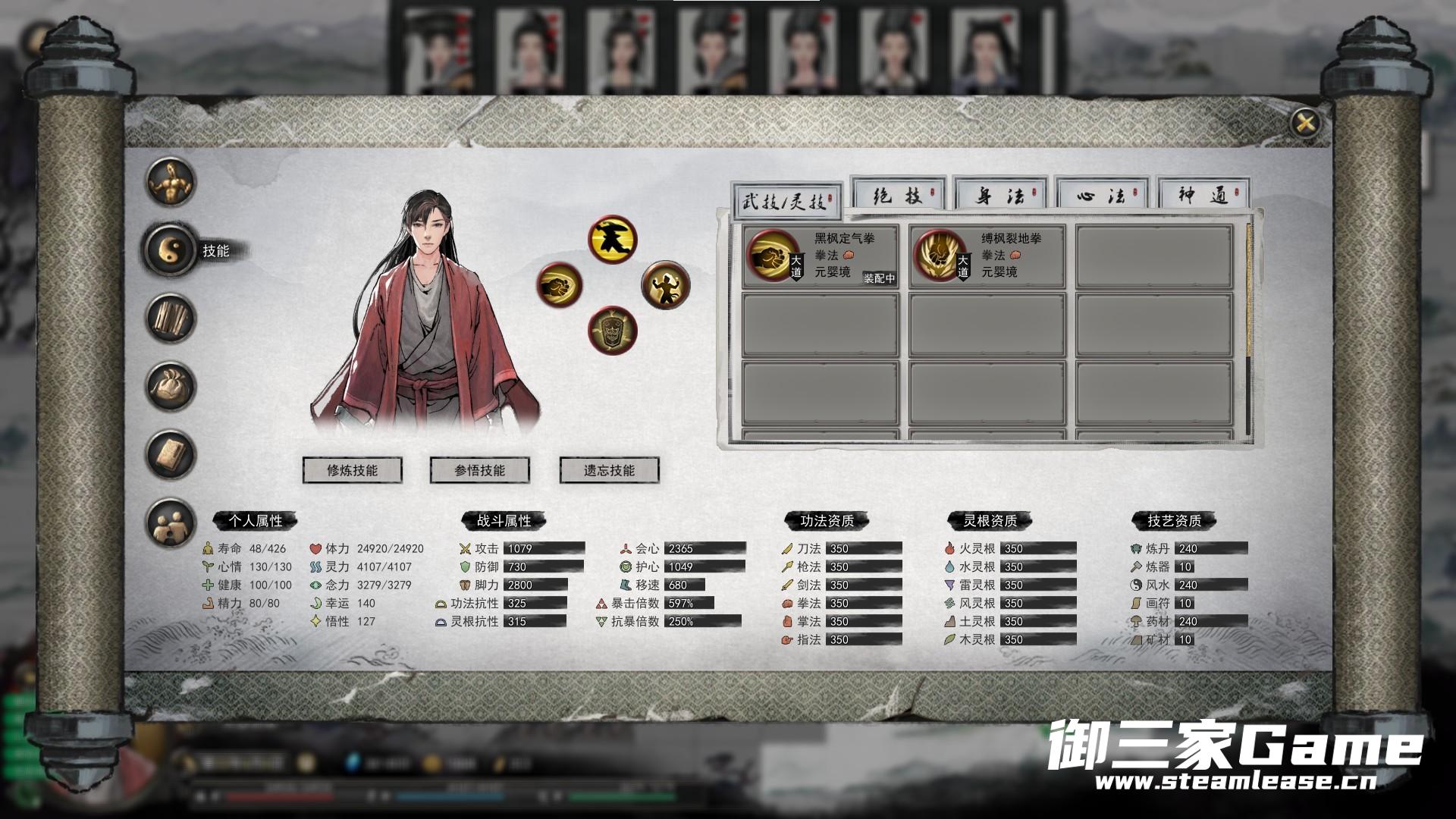 PS:战斗属性没有任何修改,资质在SL等时间的时候闯入各大门派,吃果子,刷药灵,最后都差了几十吧,强迫症给改了。