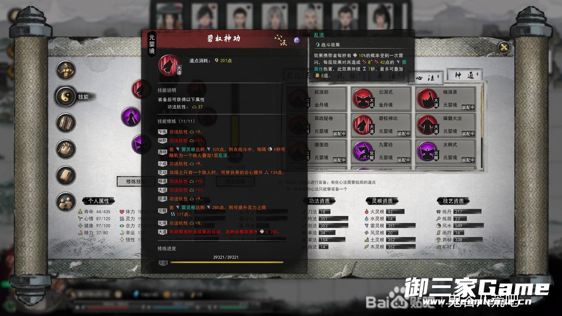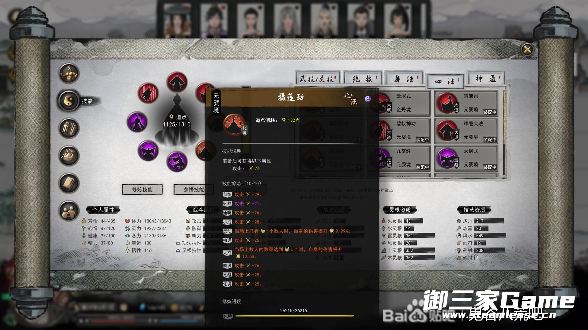 玩得雷系,属性应该是接近元婴的极限了除了灵力跟护会移速,已经无敌了化神随便打懒得洗了。