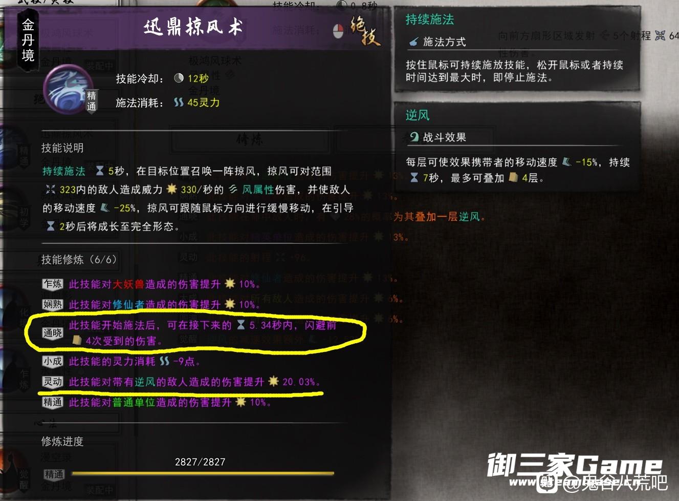 还有一点就是如果你玩风系,不要点什么双灵三灵共生,时停不吃,掠风术也不吃。