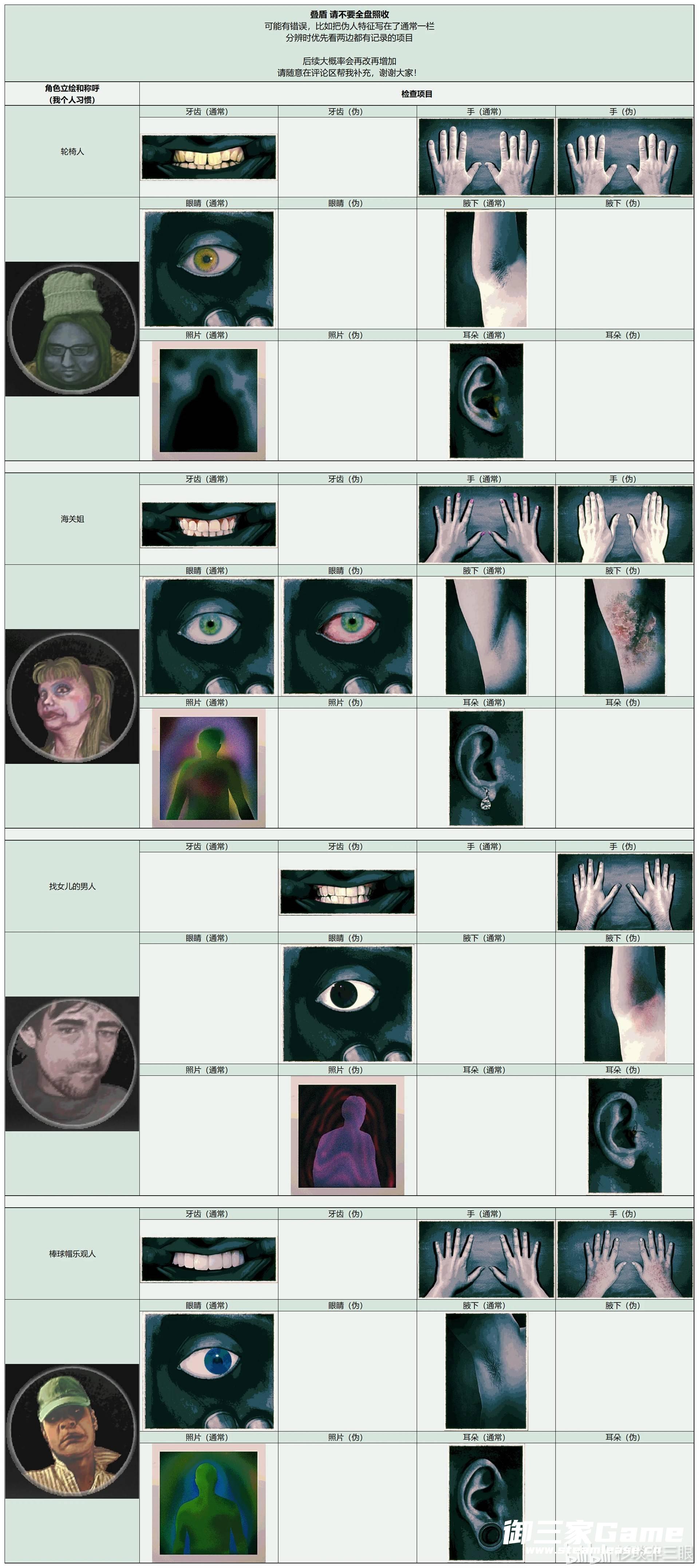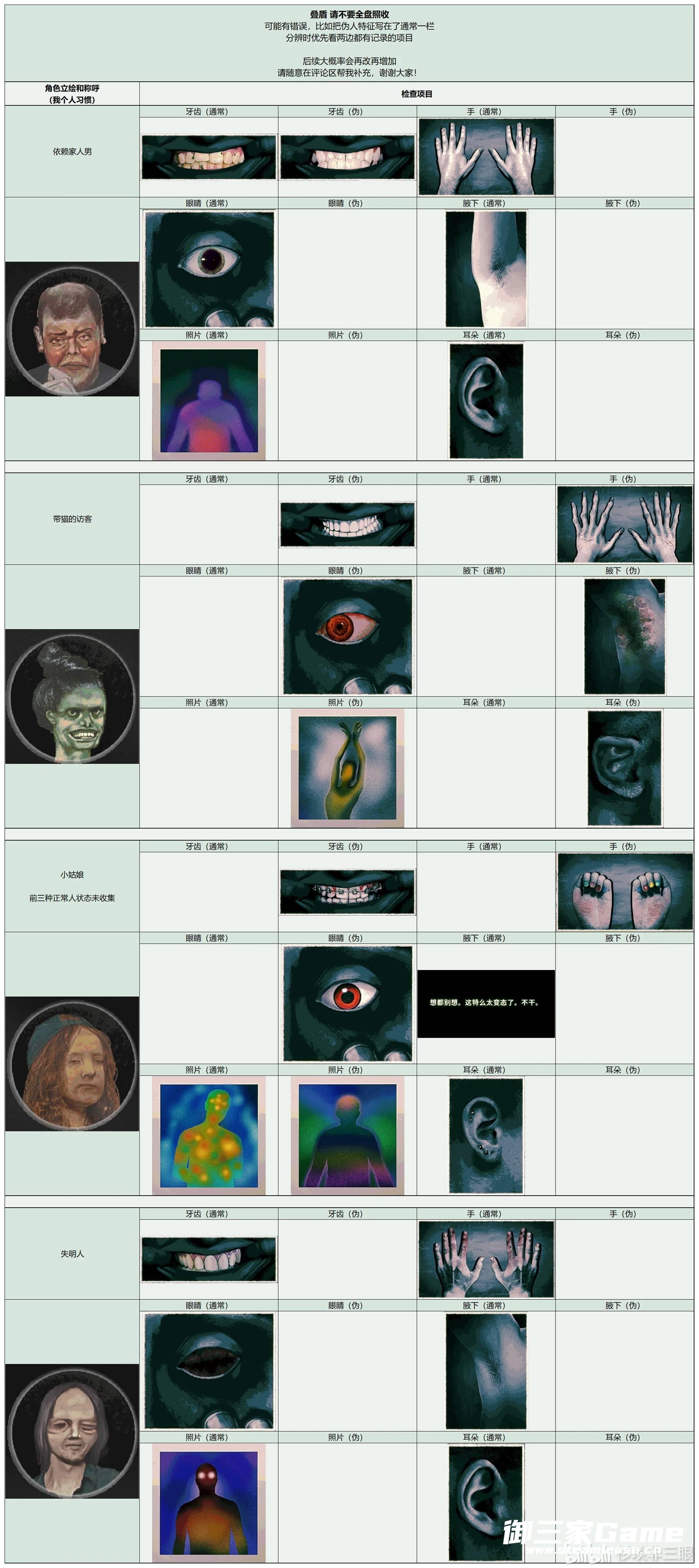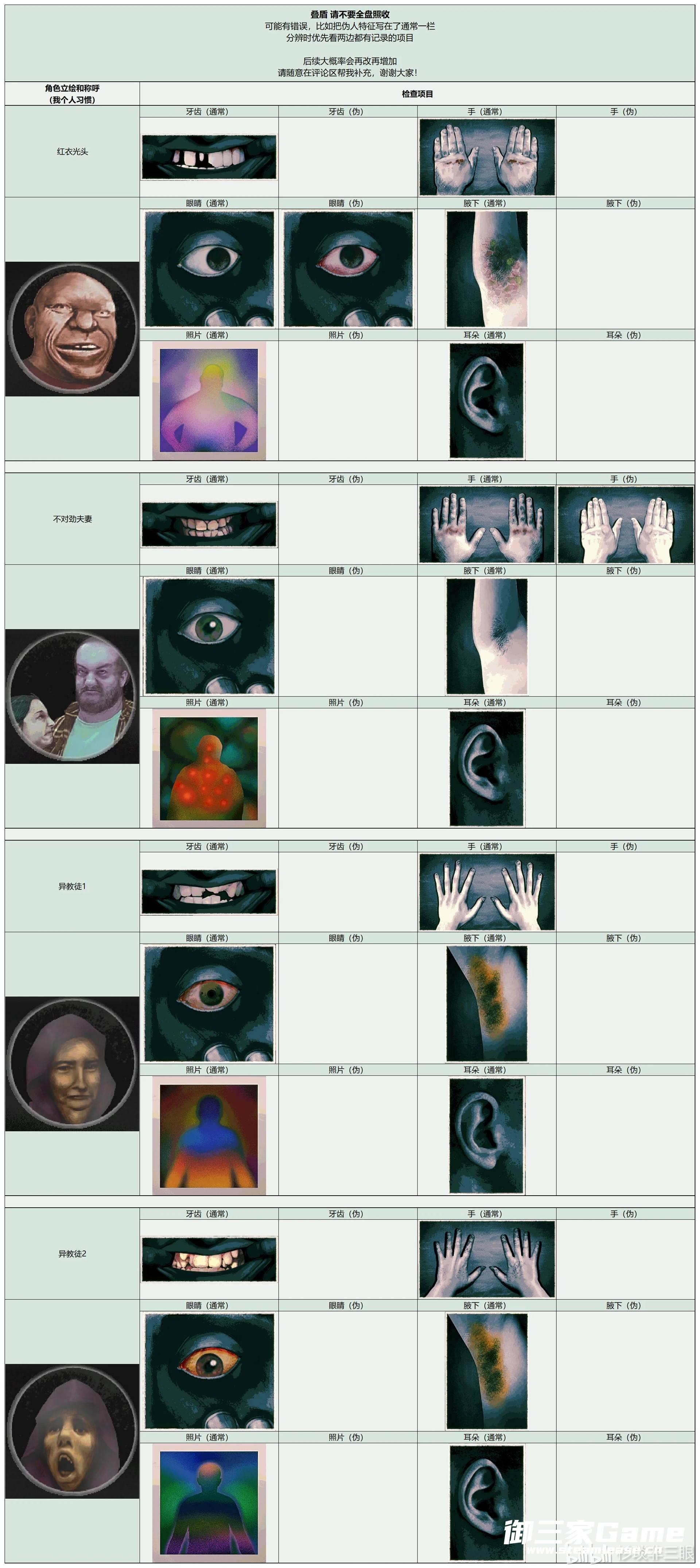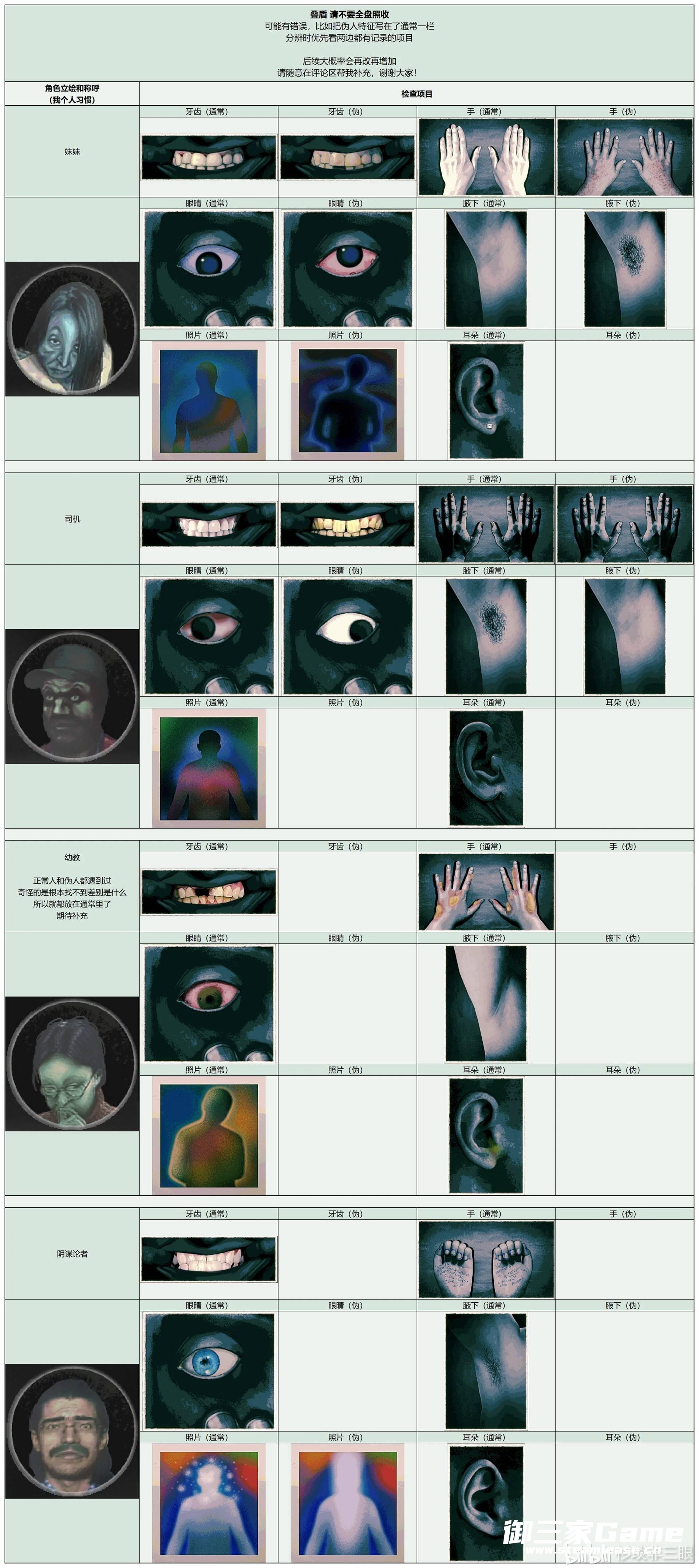 《寻找伪人》中玩家需要在根据角色的各种特征来分辨是否是伪人,下面请看由“杉琰非三眼”为大家带来的《寻找伪人》全角色特征汇总,希望可以帮助大到大家。