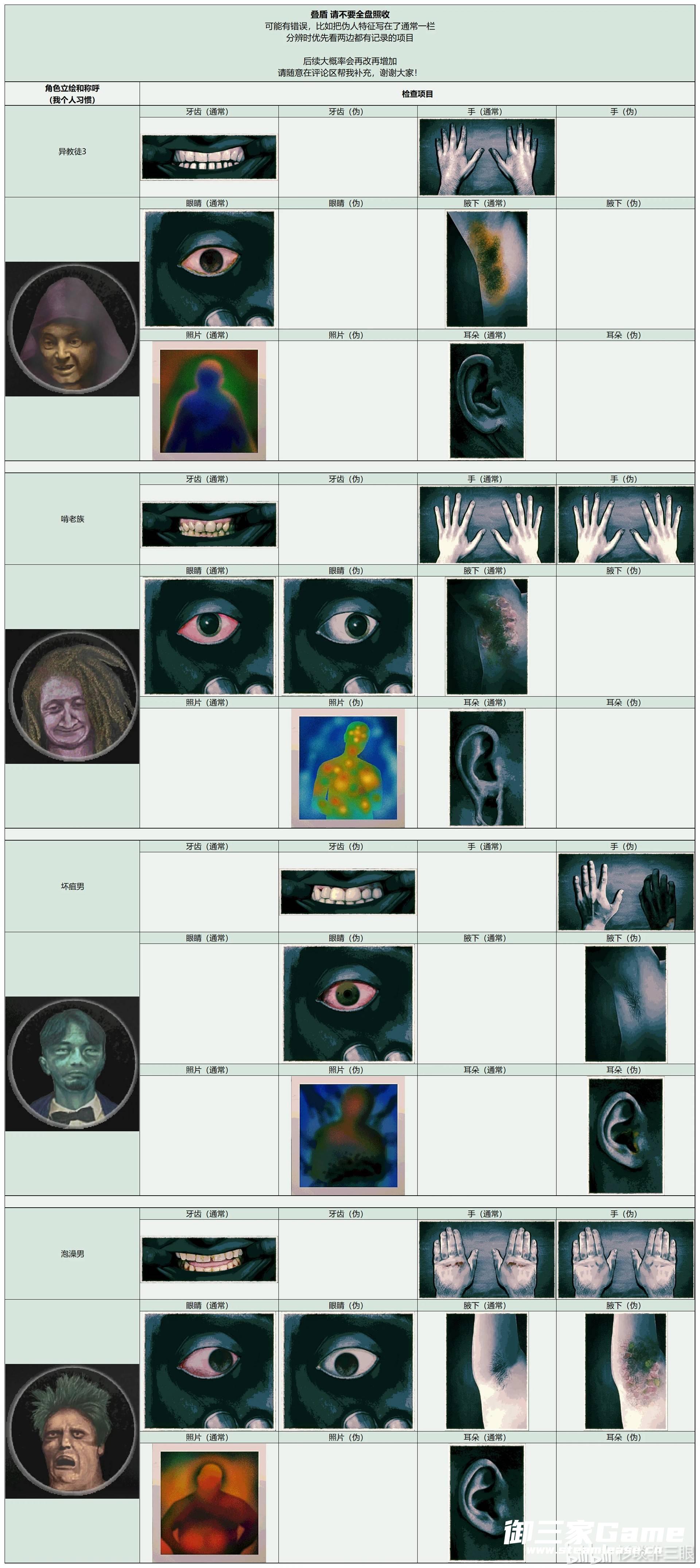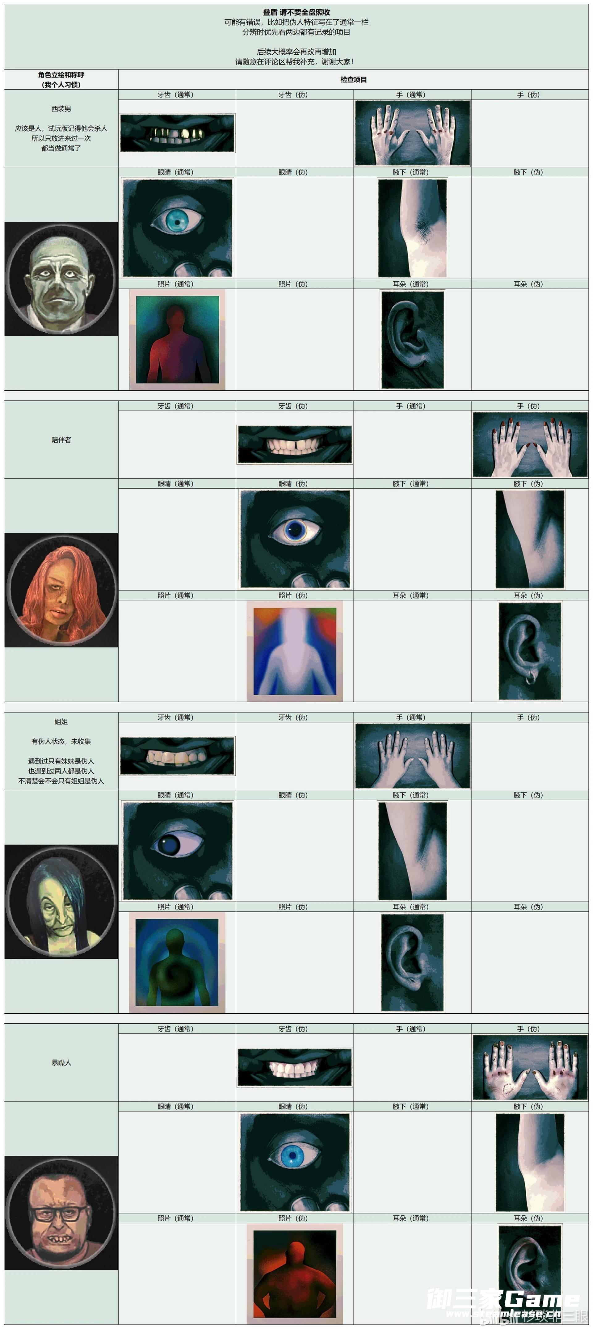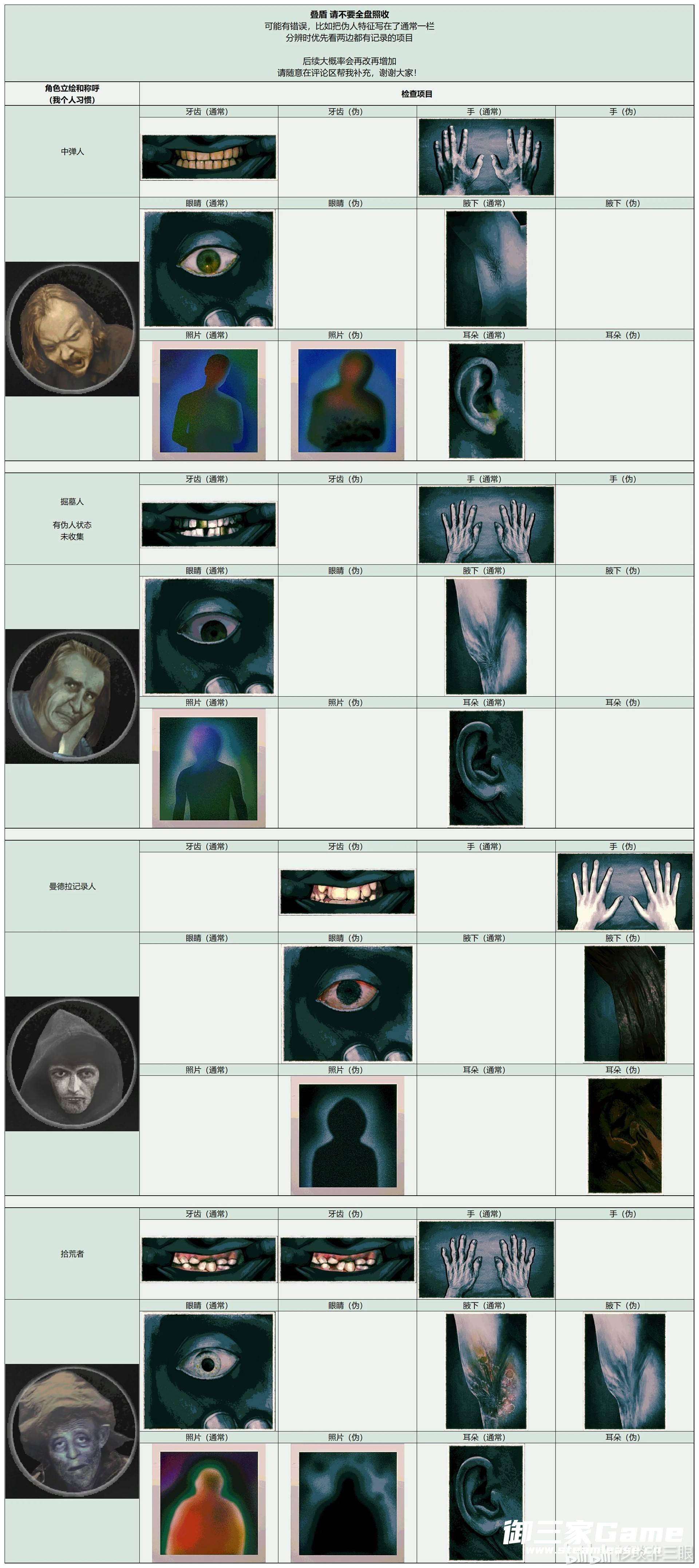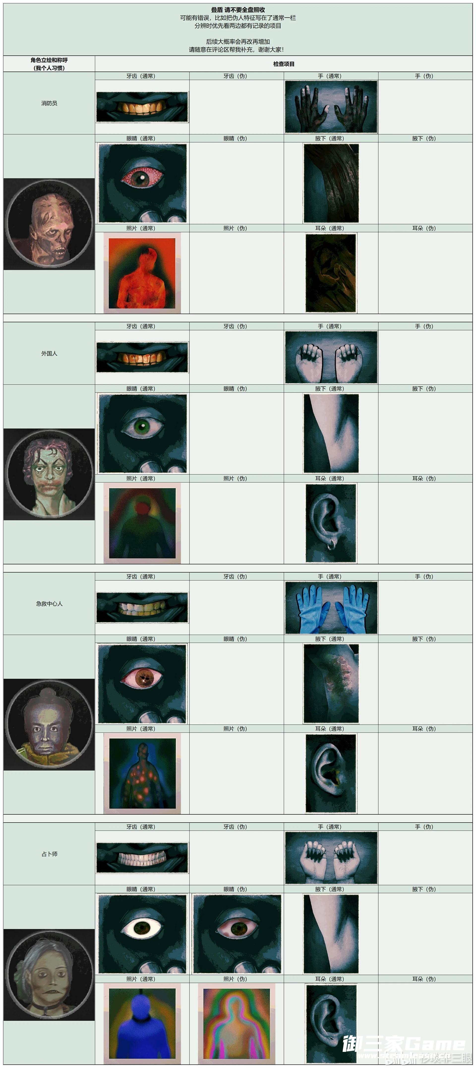 《寻找伪人》中玩家需要在根据角色的各种特征来分辨是否是伪人,下面请看由“杉琰非三眼”为大家带来的《寻找伪人》全角色特征汇总,希望可以帮助大到大家。