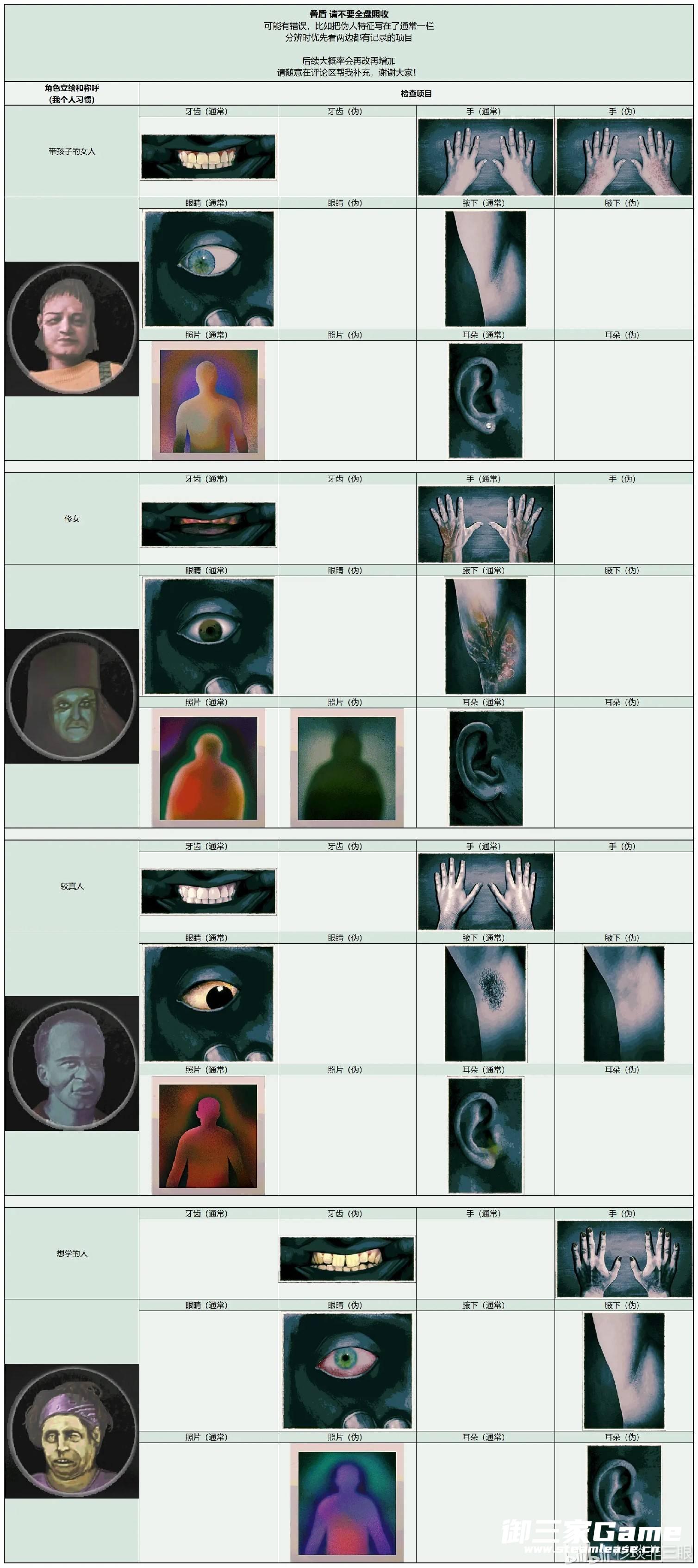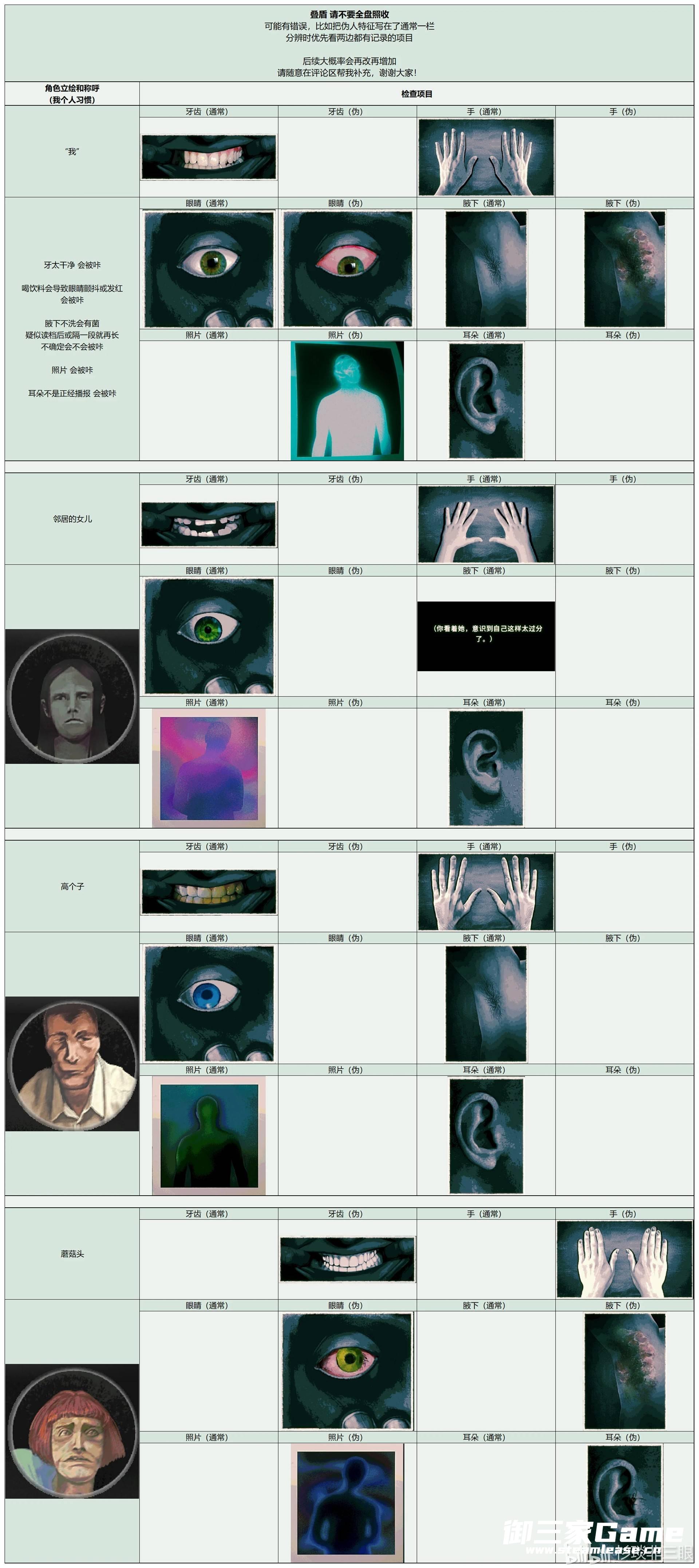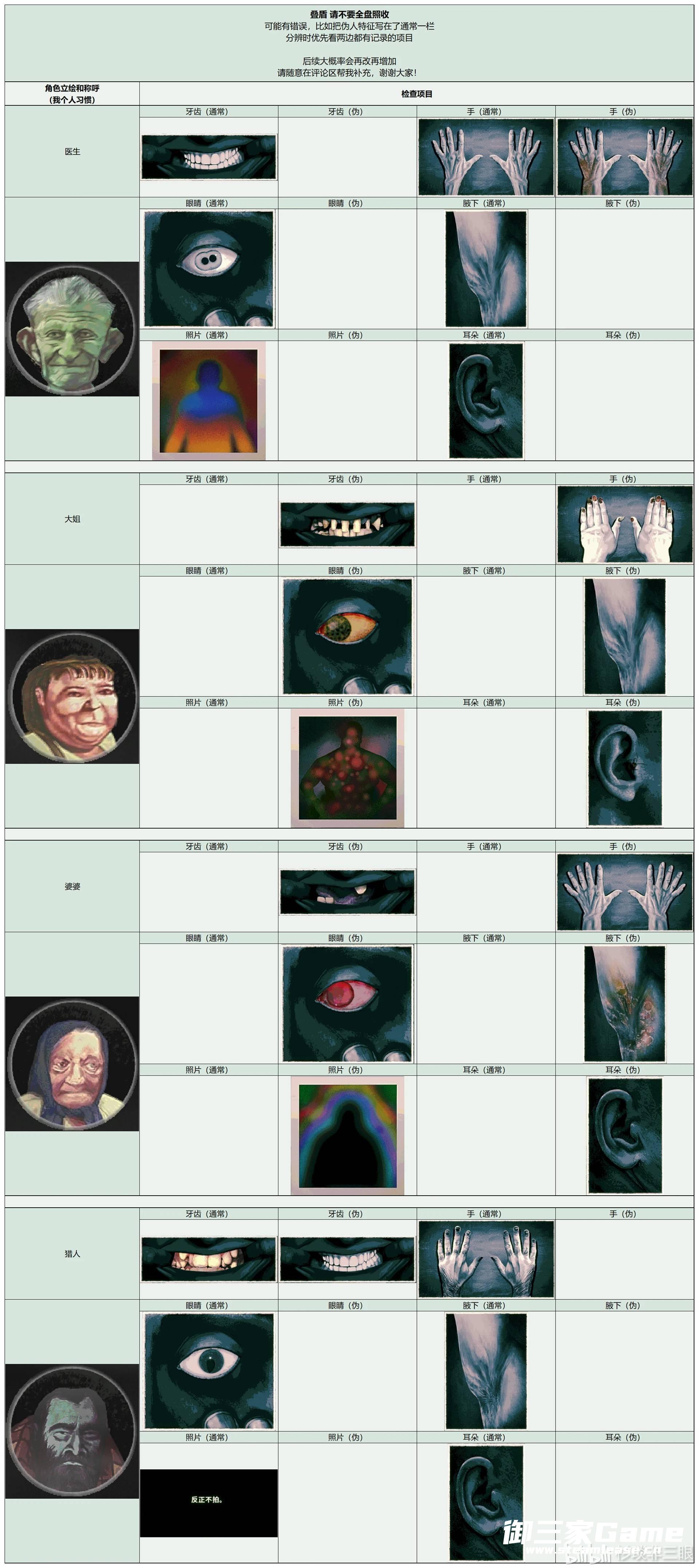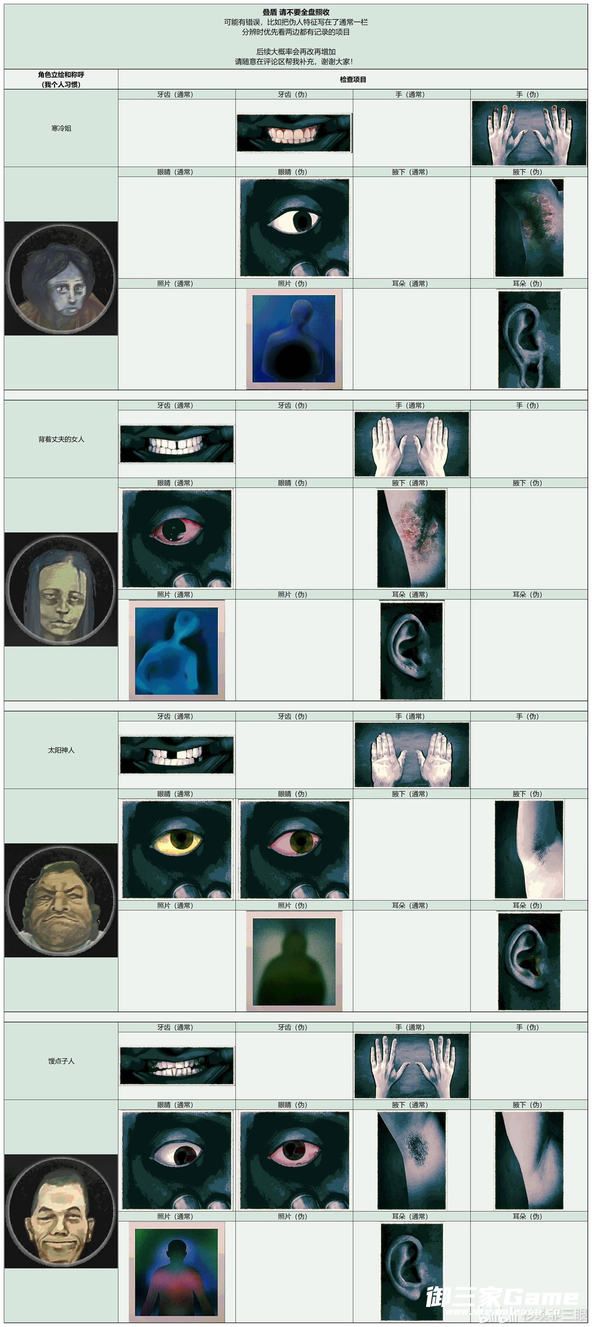 《寻找伪人》中玩家需要在根据角色的各种特征来分辨是否是伪人,下面请看由“杉琰非三眼”为大家带来的《寻找伪人》全角色特征汇总,希望可以帮助大到大家。