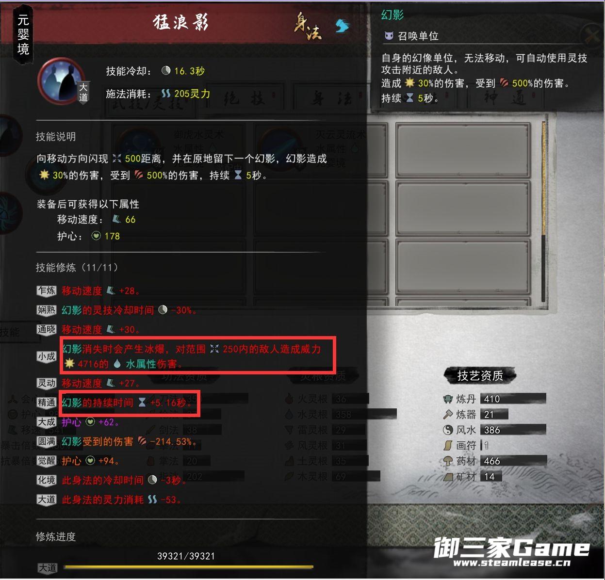 分身选择水系本身的幻影 词条选择自爆和增加持续时间 后期成型的情况下一个分身就能清完除了boss战之外所有战斗 你只需要喝茶就行了