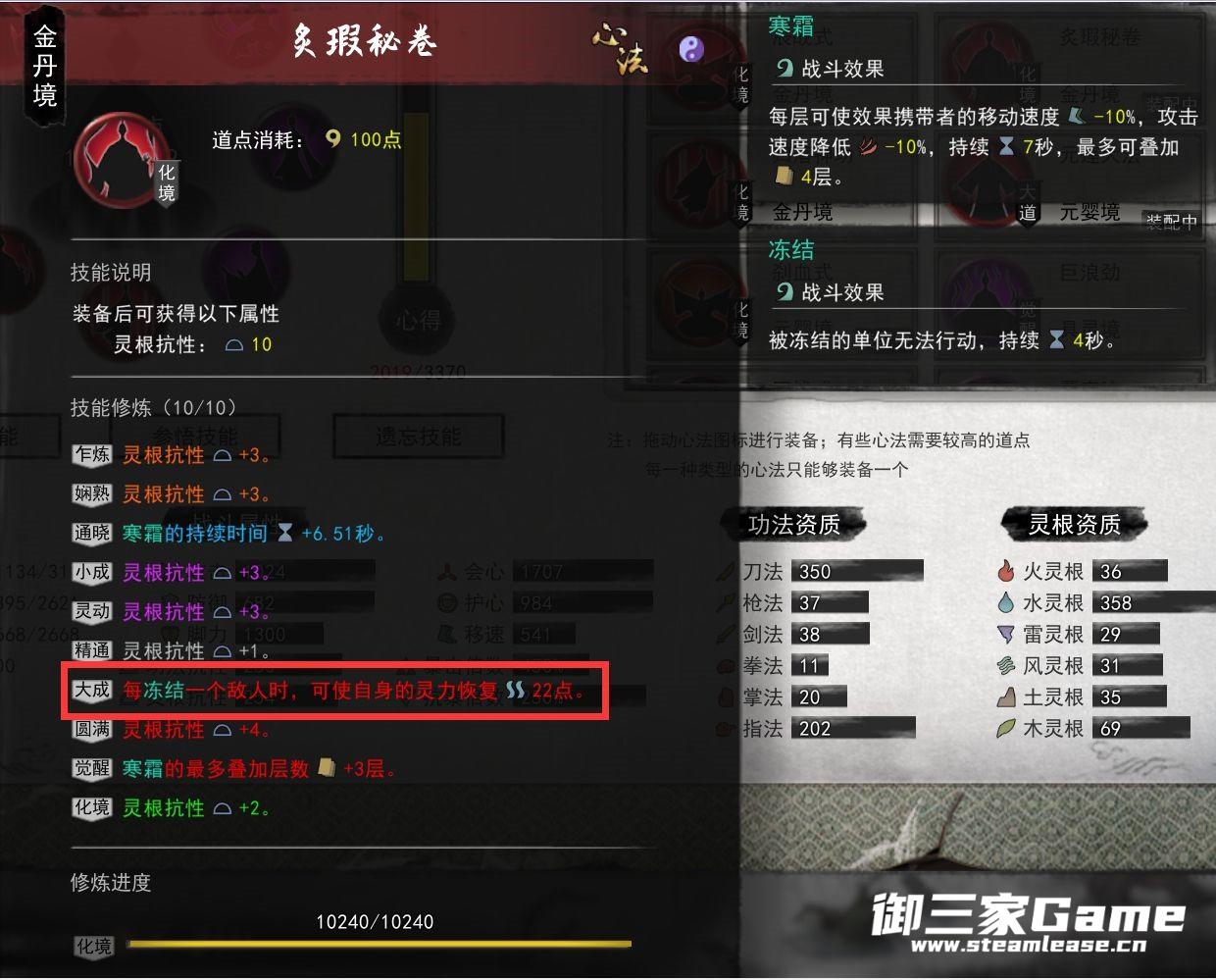 体力里的击杀冰冻回血 和 灵根抗性里的冰冻回蓝是冰冻流永动的核心 务必刷出来 有了这几个词条 你可以不带任何药出门玩耍。