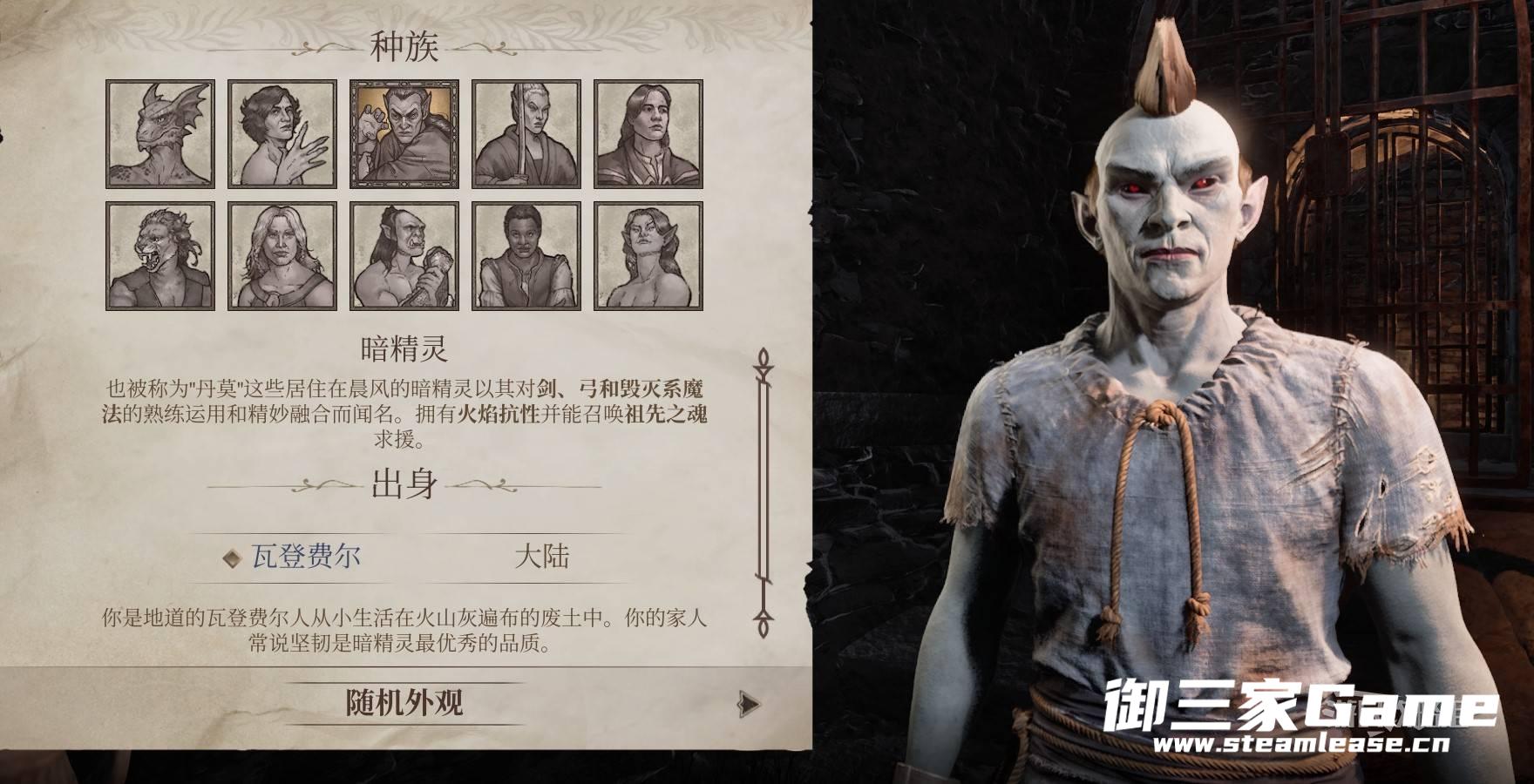 角色出身本质上是为了丰富角色扮演氛围的一种选项,可以在开局创建角色时补充角色的背景故事。每个种族都有2个出身,出身会提供一些关于角色过去的信息,最主要的是会改变角色属性,使之与过去的经历相符合。