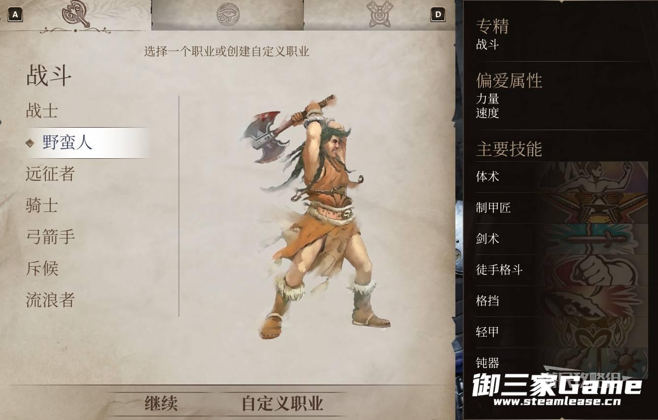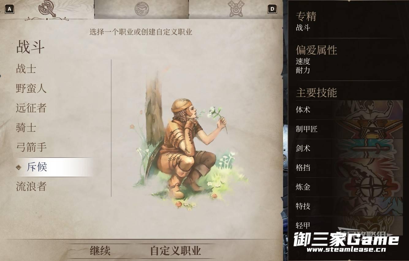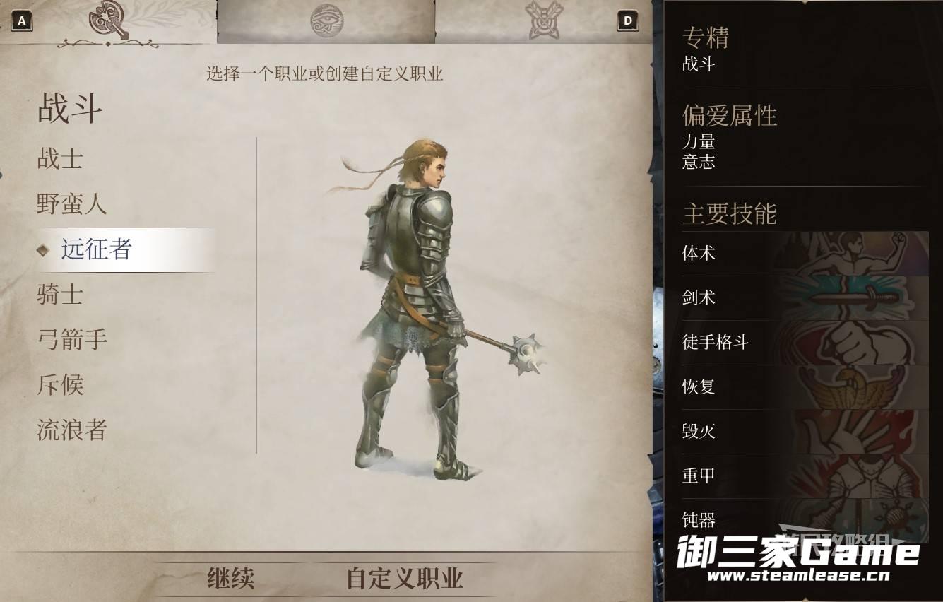 主要技能:体术、制甲匠、剑术、格挡、炼金、特技、轻甲