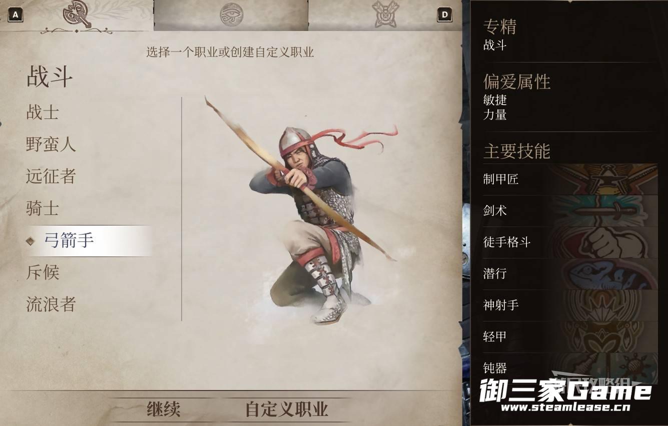 主要技能:制甲匠、剑术、徒手格斗、潜行、神射手、轻甲、钝器