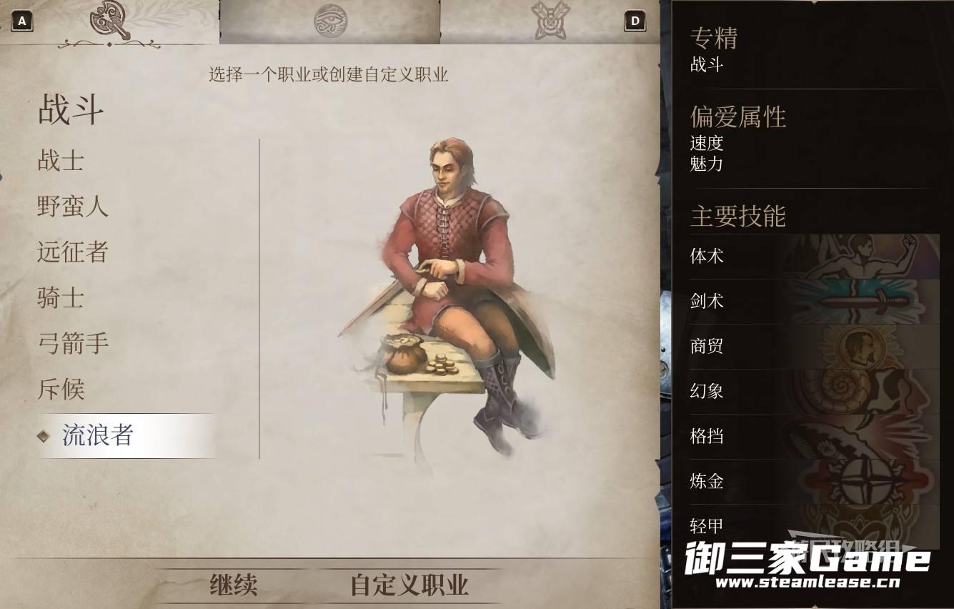 主要技能:体术、剑术、商贸、幻象、格挡、炼金、轻甲