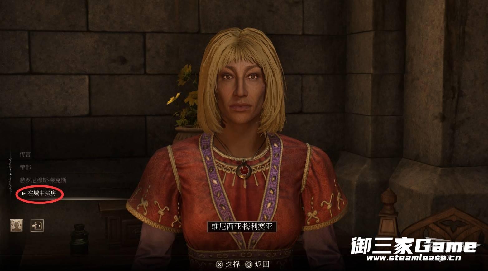 在帝都市场区的帝国贸易办事处,和惟尼西亚·梅利赛亚对话,花2000可以买到滨水区的一间小屋。