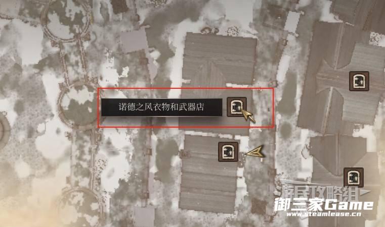前往【布鲁玛】的【诺德之风衣物和武器店】,位置如地图所示。