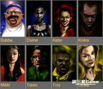 一共有八位玩家可以在游戏的八个角色中自由选择其中一个进行游戏,角色有四位男性、四位女性,名字分别为:Travis、Troy、Bubba、Kivlov、Ulrika、Katie、Divine和Mikki,但在PS版本中仅允许玩家选择四位男性角色。