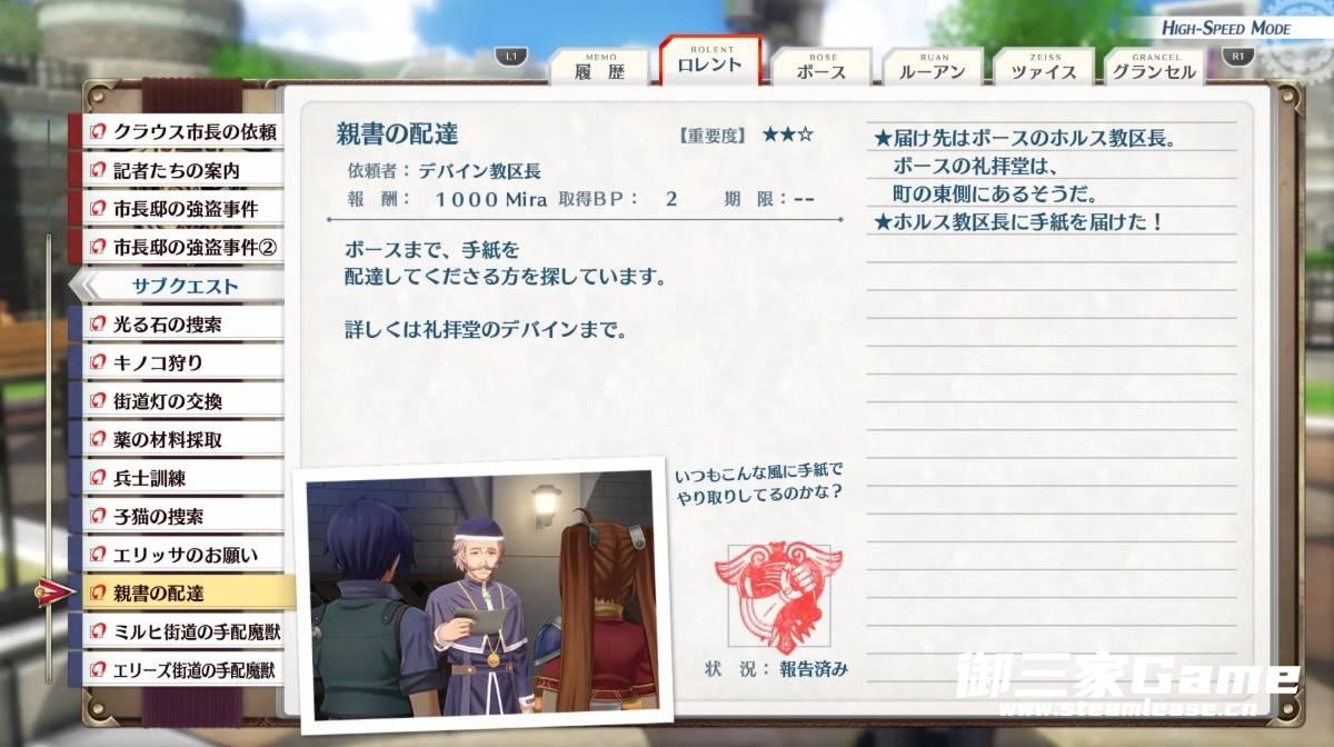 《空之轨迹1st》中的送亲笔信任务是第一章的一项支线,下面为大家带来《空之轨迹1st》送亲笔信支线任务攻略,一起来看看吧。