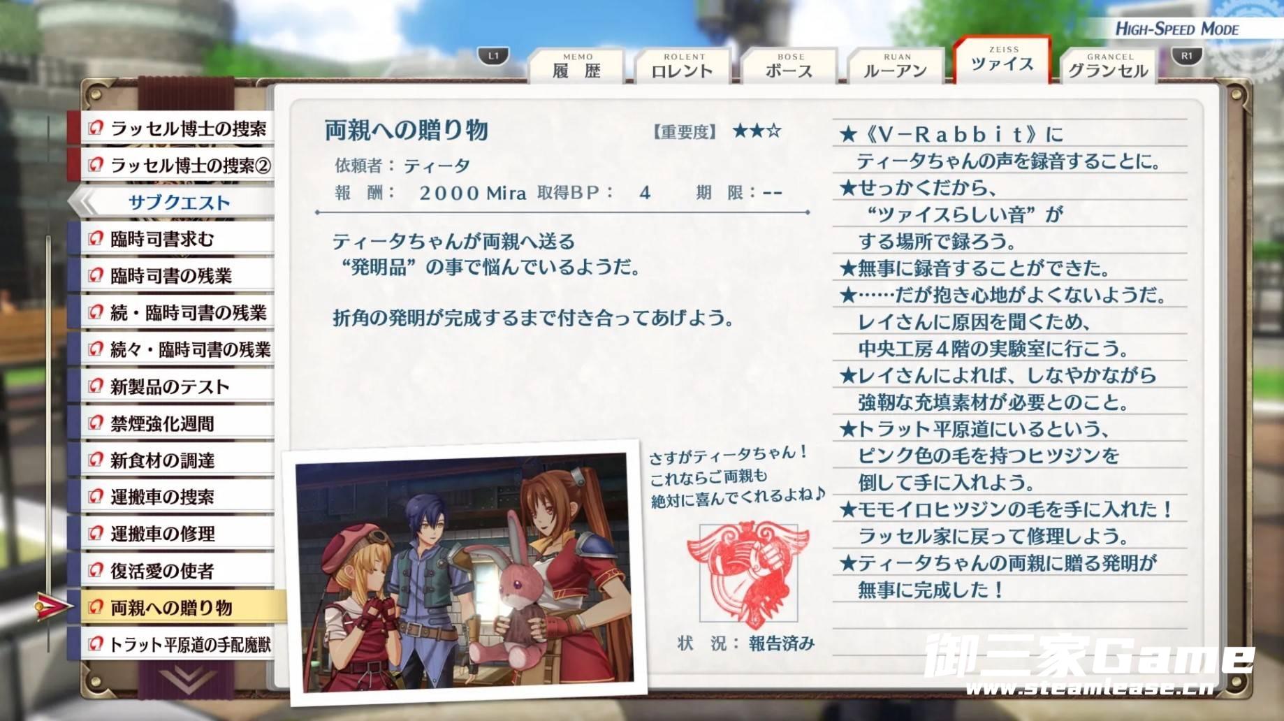 《空之轨迹1st》给父母的礼物是游戏中的隐藏支线任务,那么这项任务要在哪里接取,又要如何完成呢?下面请看为大家带来的《空之轨迹1st》给父母的礼物支线攻略,希望可以帮助到大家。