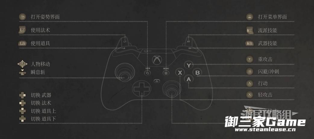 说明:本键位专为不习惯肩键攻击的玩家设置,推荐习惯游玩部分以X为轻攻击,Y为重攻击的动作游戏操作的玩家(例如黑神话悟空、仁王、鬼泣等),可以将手柄键位设置按照下方按键进行更改。下方截图以Xbox手柄为例,PS手柄也可以参考改为对应键位。