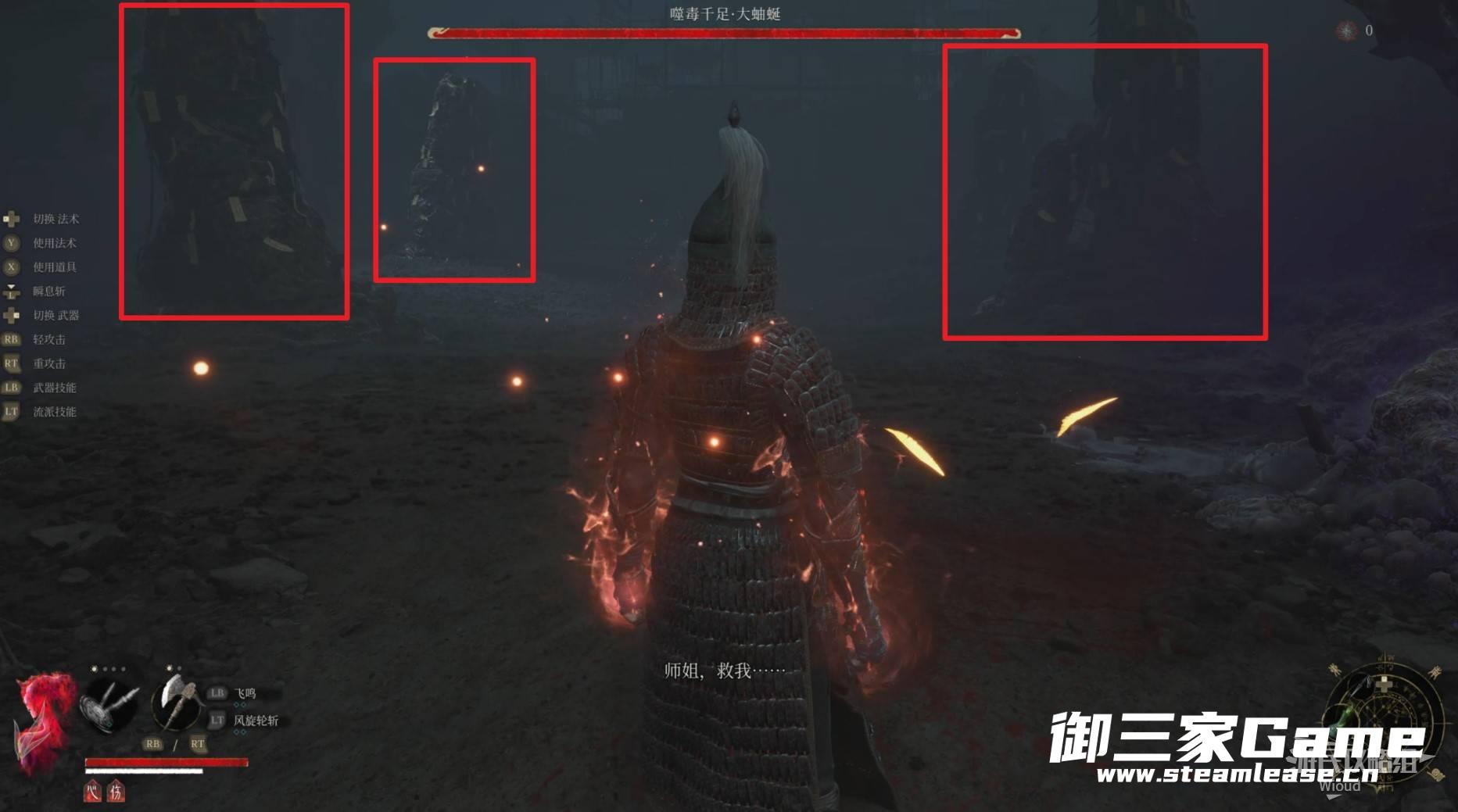 注意躲避攻击的时候绕到第二个雷柱旁边,等BOSS出来后攻击雷柱,然后继续朝硬直的BOSS输出。