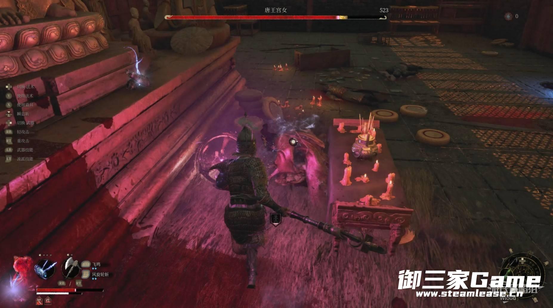 穿过第一个房间,院子处遇到一个双刀明军,战斗结束往左走,穿过一个缺口。