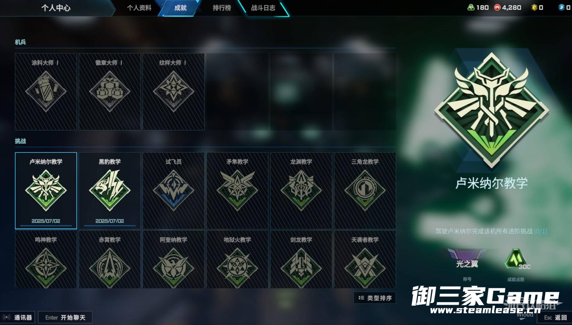 主页打开【个人中心】点击【成就】,此处可查看玩家已经完成与未完成的所有成就。