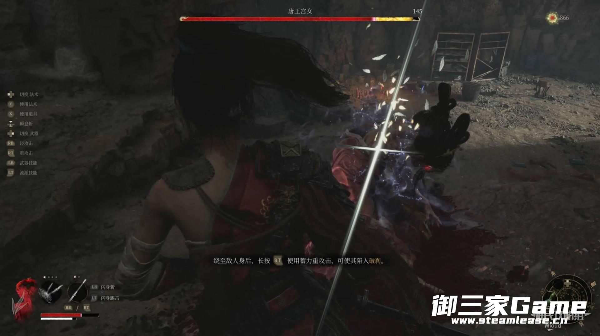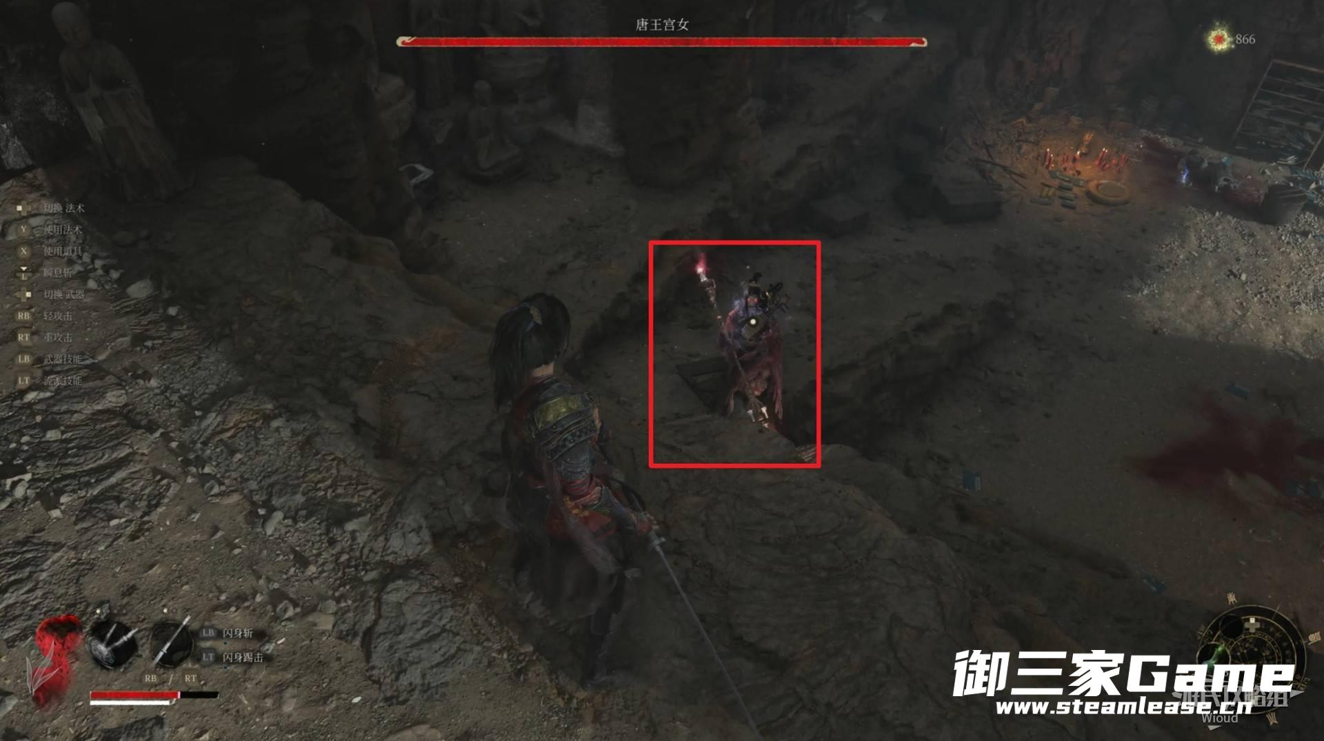 利用地形把宫女勾引到上坡处,直接从高处下劈攻击,此时BOSS必定倒地,接一个处决再次回到高处重复此操作即可。