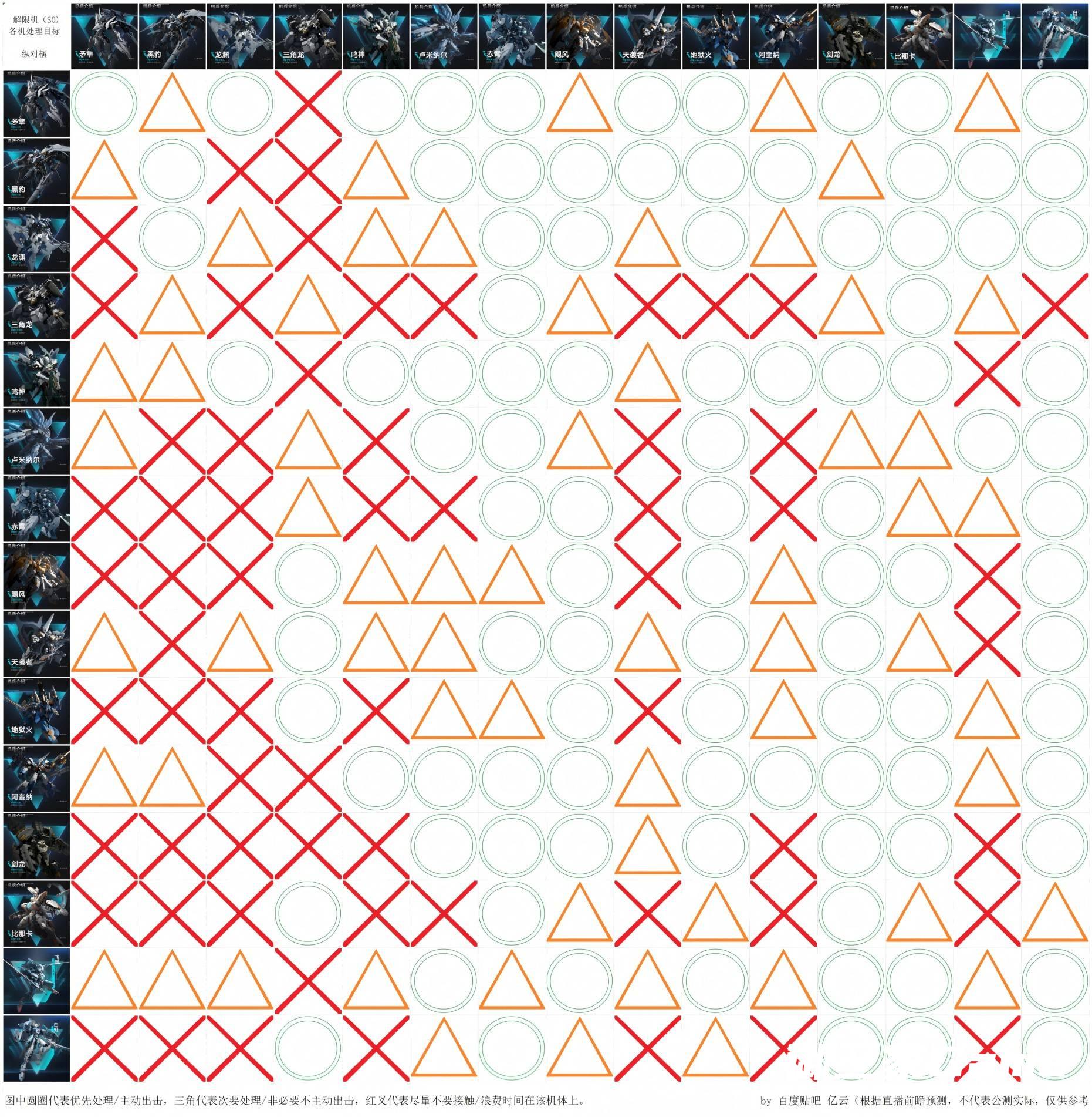 作为万物55开,本机理论上可以找任何机子的麻烦,但受限于气槽与dps,个人并不建议龙渊玩家去追飞机或输出三角龙,这些事情有更适合的机体,而狙击机一般距离战场过远/过于灵活,在1对1的情况下龙渊事实上只能起到较小的效果,比起找他们的麻烦,寻找图中画圈的机体会是更好的选择。