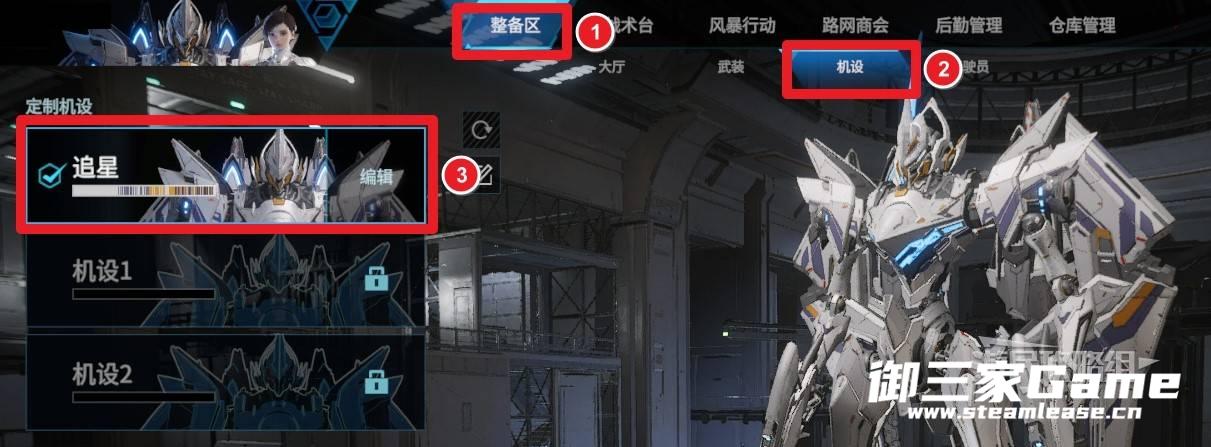 进入游戏后,在主界面点击【整备区】,然后下方选项卡中选择【机设】,继续选择想要修改配色的机兵,点击【编辑】即可修改颜色。更多颜色需要额外解锁(例如直接通过功勋解锁或通过开箱/商店购买获得)。