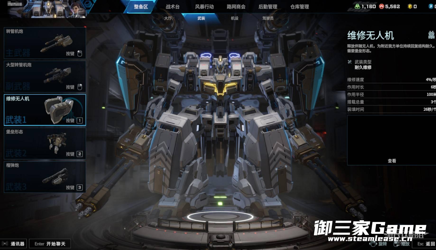 维修无人机是三角龙携带的组件之一,只有堡垒形态下可使用,释放维修无人机可为自己少量回复生命值,释放无人机可立刻脱离堡垒形态,维修无人机可对周围的队友使用。