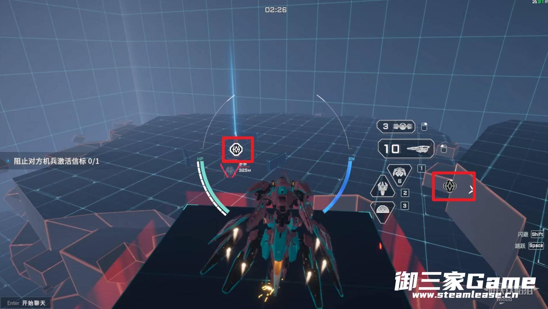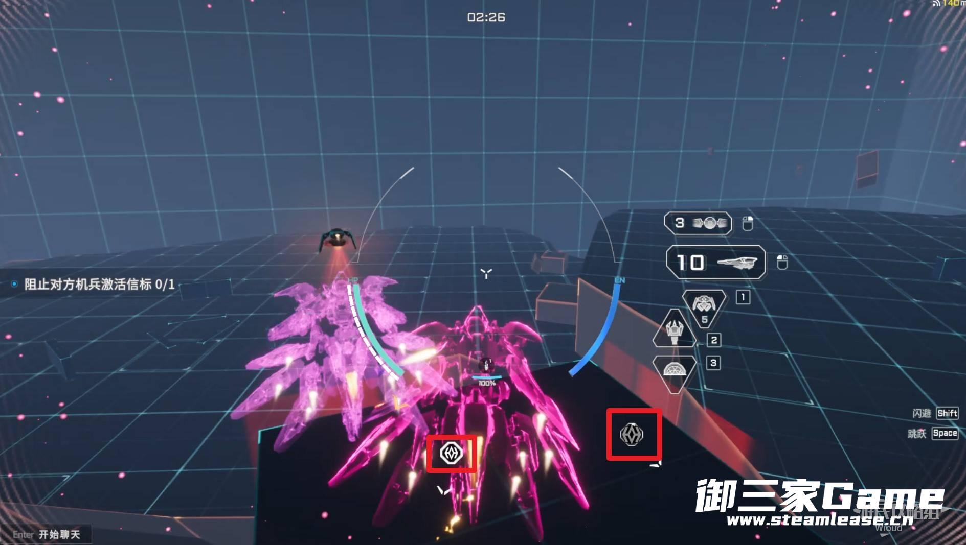 目标是在2分30秒内防止敌人激活信标,开局可以看到有两个图标提示,白色高亮的为已经出现在场地的信标方向,暗色为即将刷新到场地的信标方向。