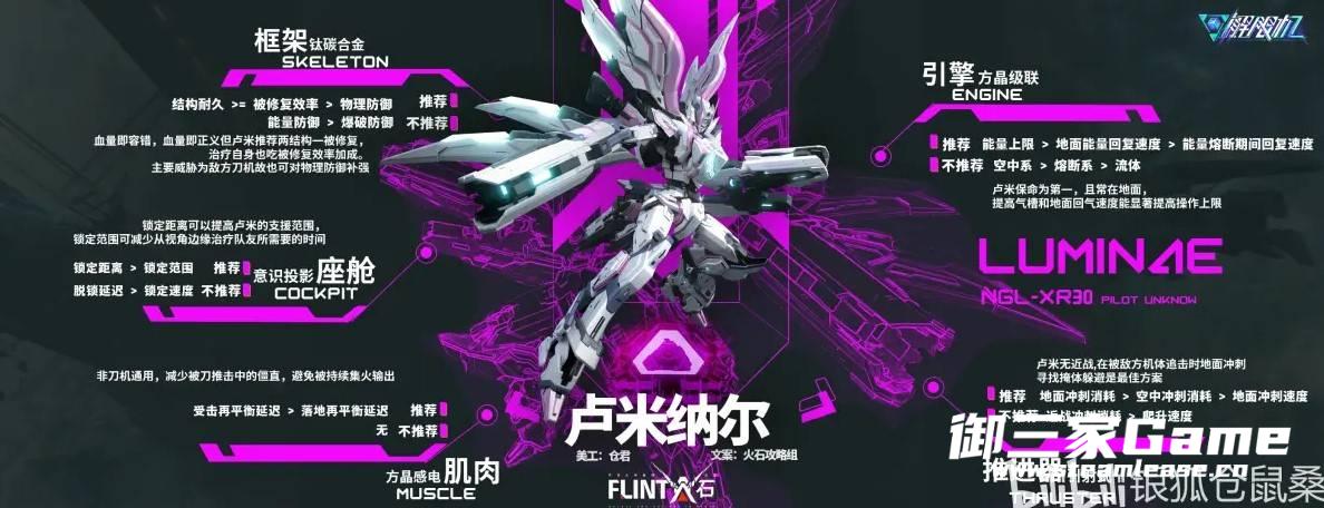 《解限机》有很多种类的机甲,其中卢米那尔这个机甲该怎么选择配件才能发挥出更强的水平呢,下面请看“银狐仓鼠桑”带来的《解限机》卢米那尔配件搭配推荐,希望能够帮助大家。
