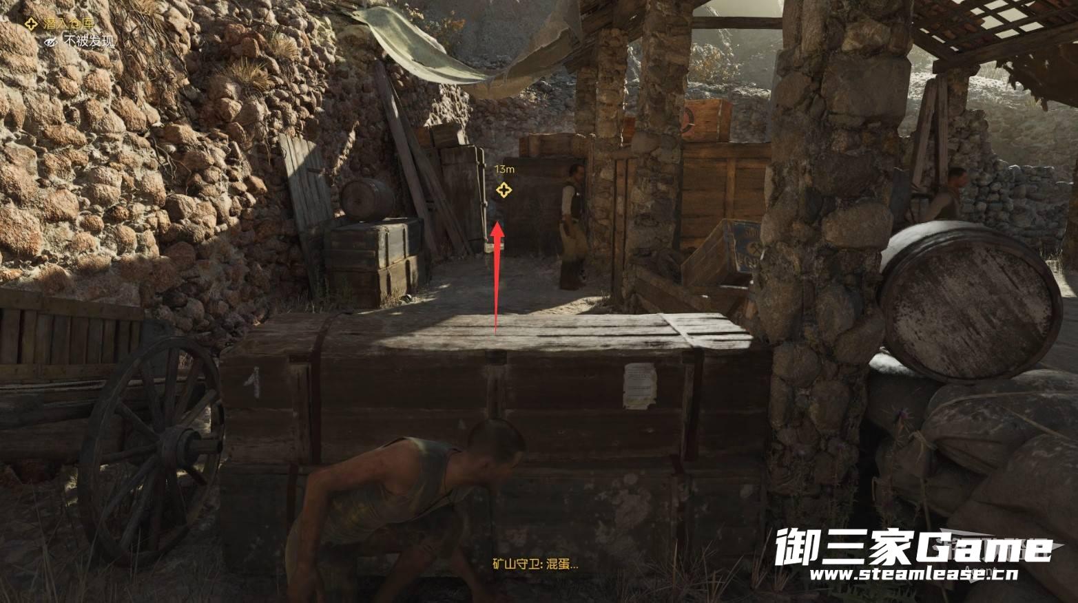 工棚的饭已经没了,等守卫离开后,潜入仓库偷食物。
