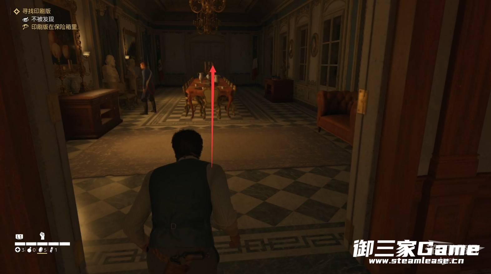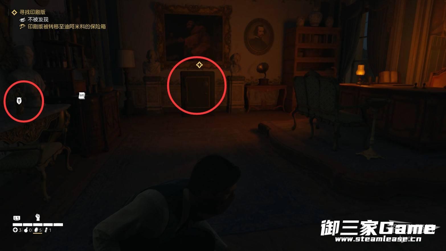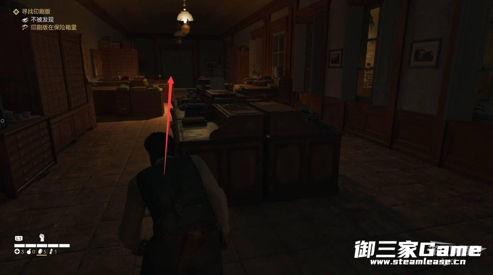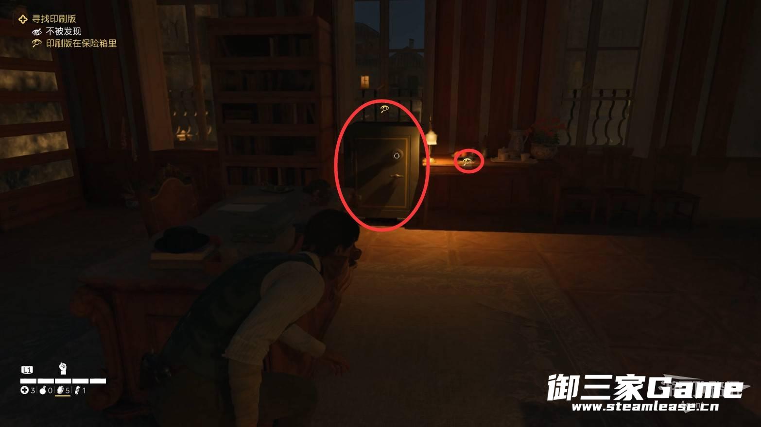 在地下牢房救出朱塞佩后,进入大楼,看桌上的文件,得知印刷版在保险箱里。