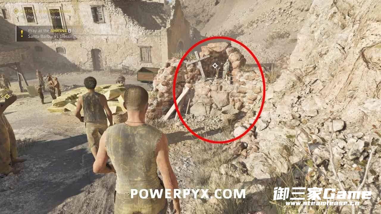 离开矿井后与加埃塔诺同行,在通往工棚的主路上可以在右侧找到这张卡片,看着像个神龛,上面有个木制十字架。