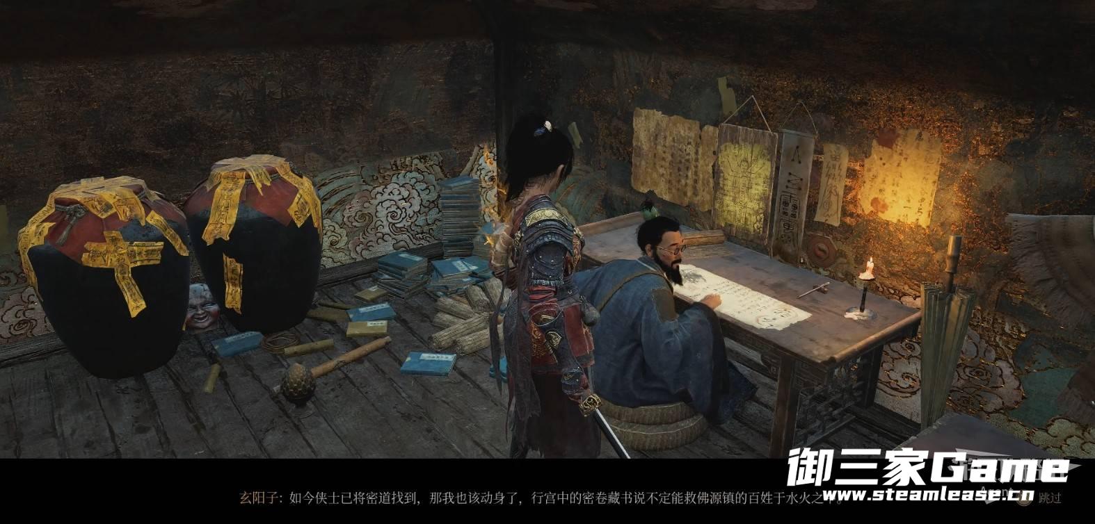 1、游戏一开始来到普元寺,见到玄阳子,得到【贵重物品】帛书。