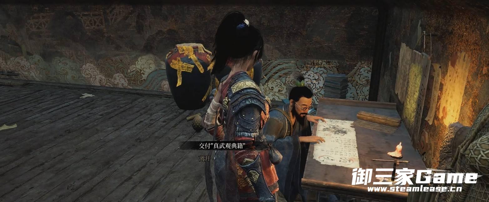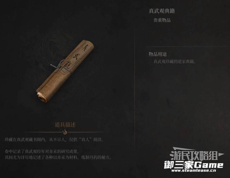 1、在真武观顶部的藏书阁楼上,书架上拿到【贵重物品】真武观典籍,开盒子拿到【斧头武器】火蛟龙。