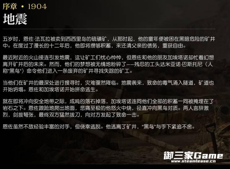 《四海兄弟故乡》让玩家可以切身体验一段设定于1900年代西西里岛的残酷帮派故事。下面为大家带来《四海兄弟故乡》主线剧情概述,一起来看看吧。