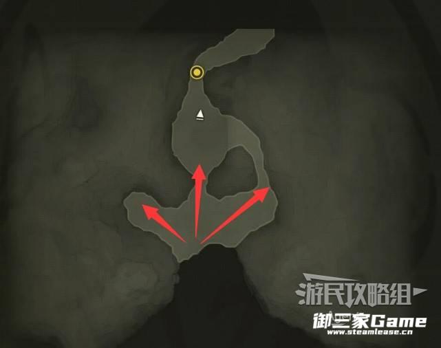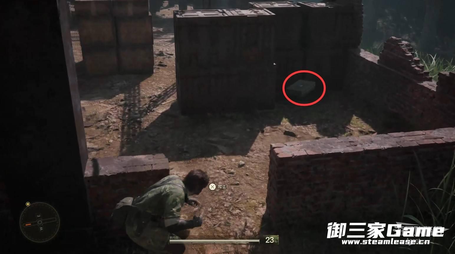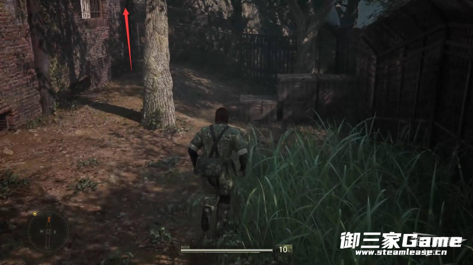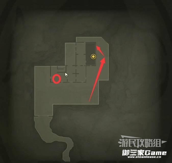 沿下图路线,爬上右侧墙壁上的梯子到房顶,从房顶的洞下去可直接抵达目的地房间触发剧情。