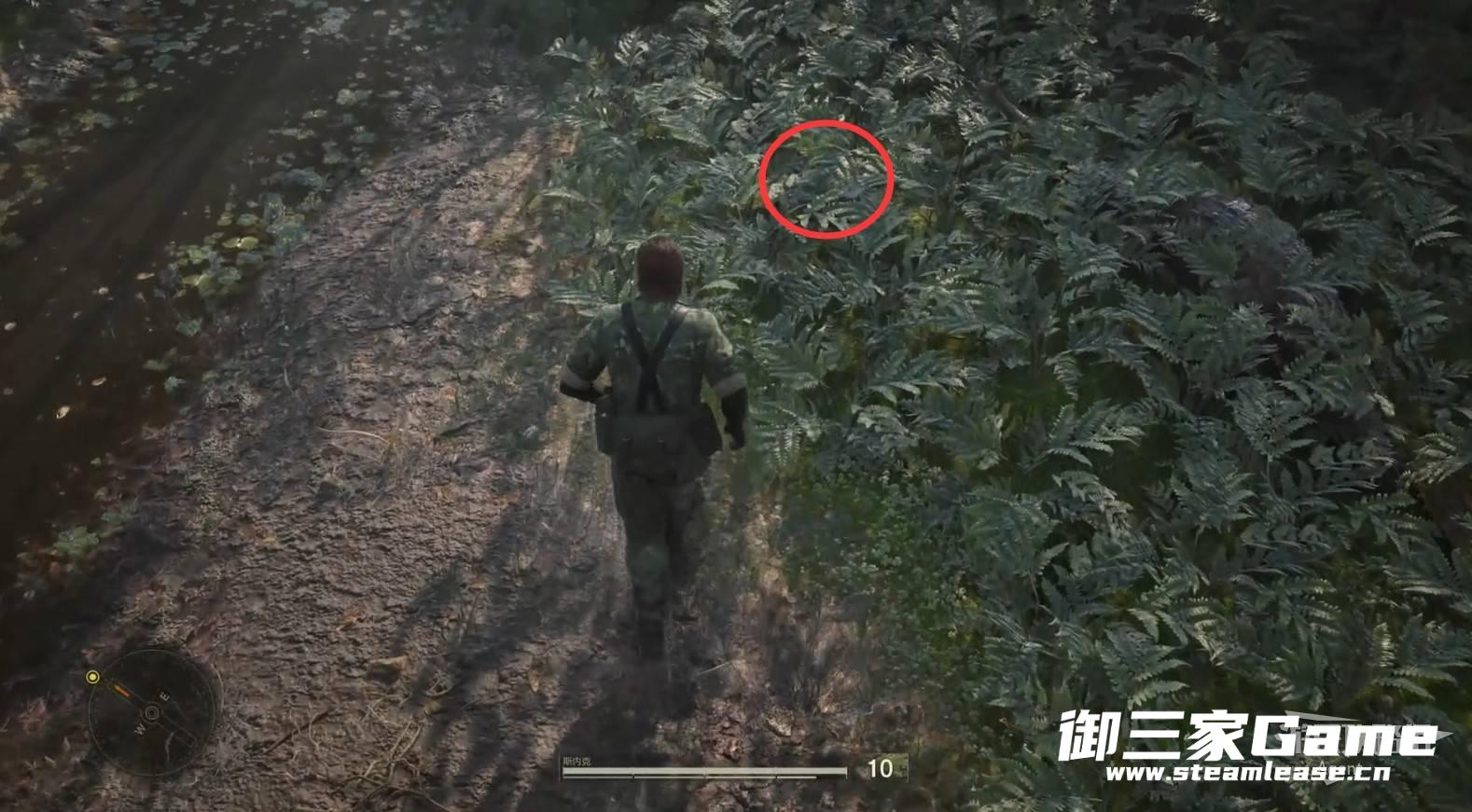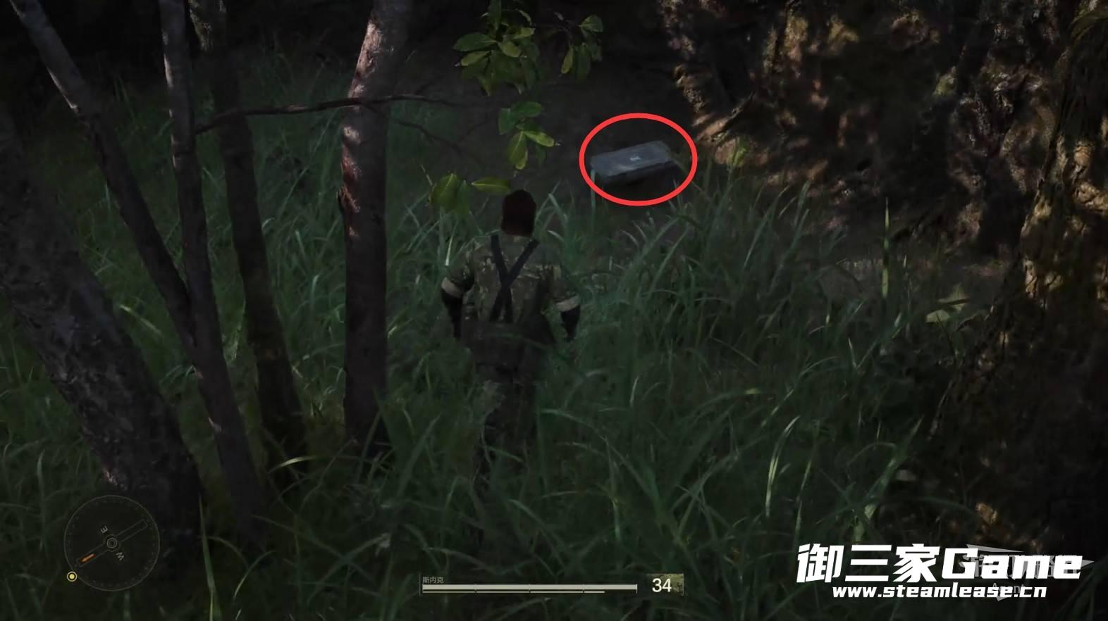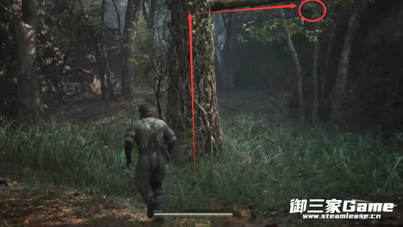 往北走来到沼泽,小心鳄鱼。鳄鱼附近也有物资可捡,右边的鳄鱼旁可捡到手榴弹。