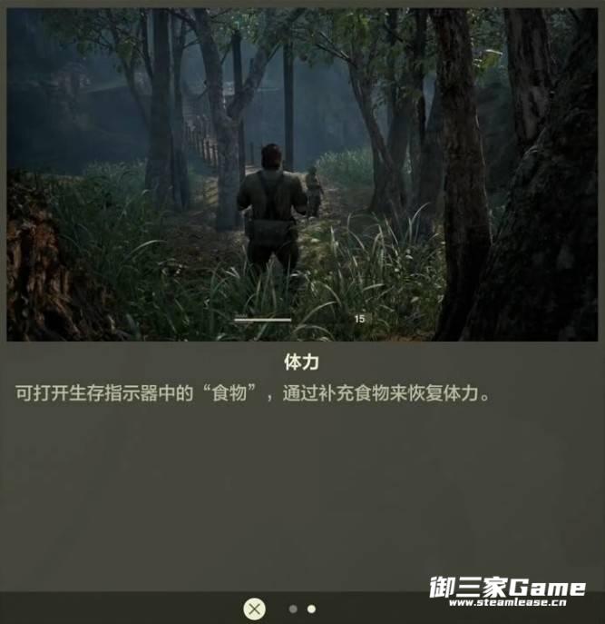 可打开生存指示器中的“食物”,通过补充食物来恢复体力。