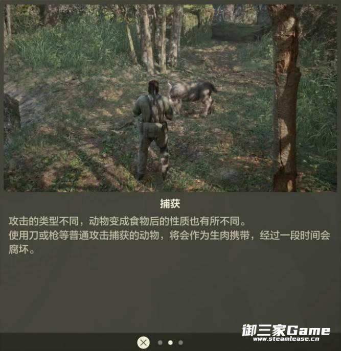 使用刀或枪等普通攻击捕获的动物,将会作为生肉携带,经过一段时间会腐坏。