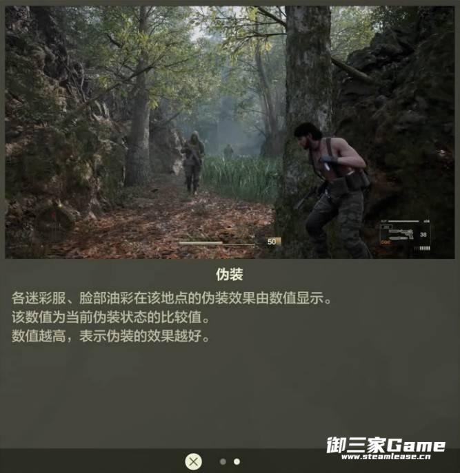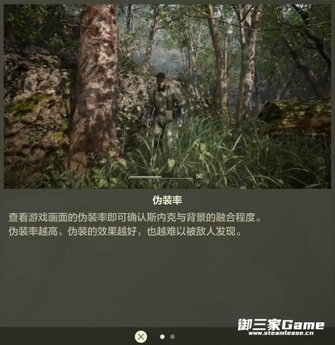 查看游戏画面的伪装率即可确认斯内克与背景的融合程度。